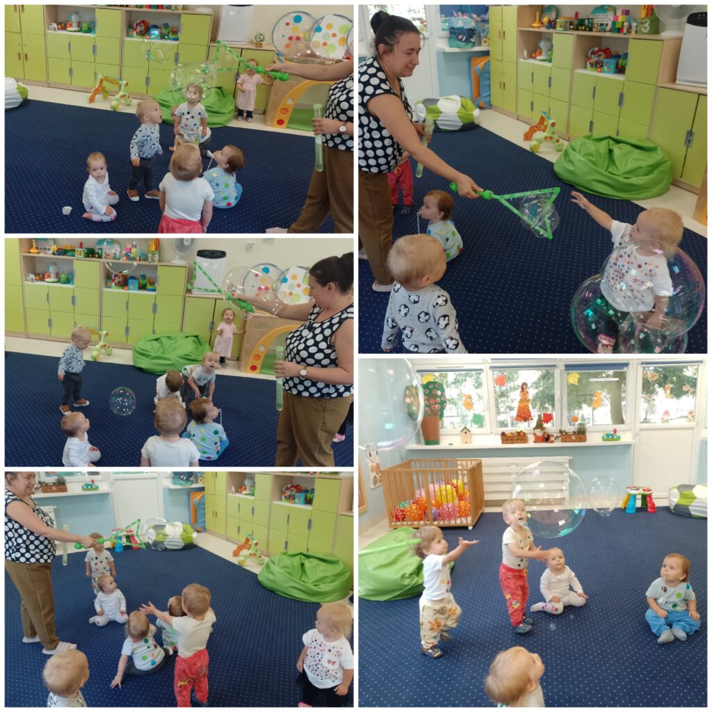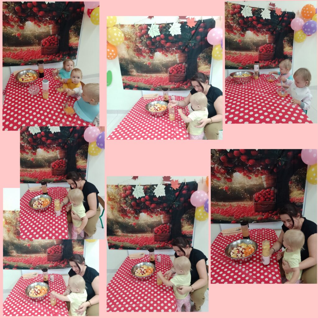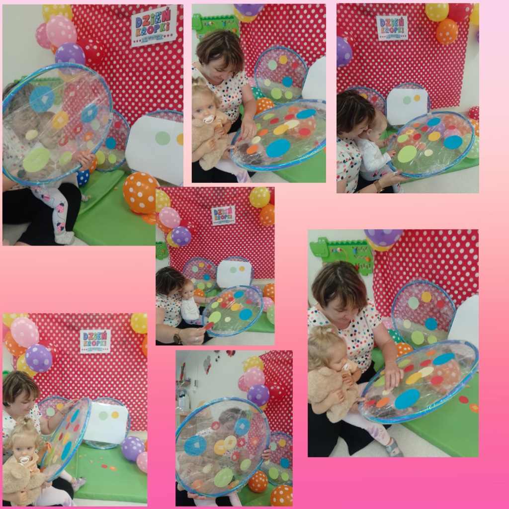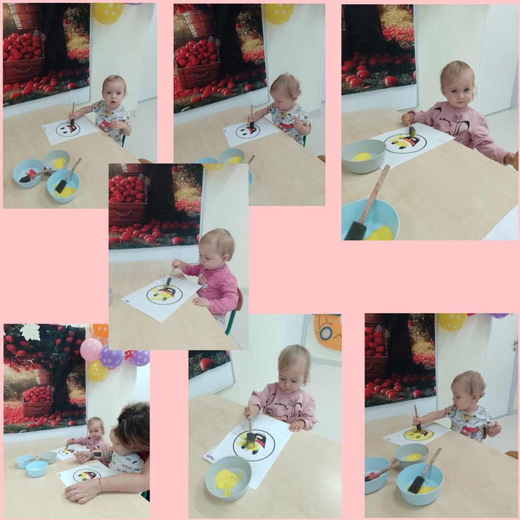 W poniedziałek Smerfiki świętowały ,,Międzynarodowy Dzień Kropki “. Maluszki przyklejały różnej wielkości kolorowe kropki na folię streczową oraz bawiły się kolorowymi balonami w kropeczki. Przenieśliśmy się również w krainę witaminek. W ramach propagowania zdrowego stylu życia wspólnie zrobiliśmy pyszny soczek że świeżych owoców. Dzieci miały możliwość zapoznania się z wyglądem, kształtem oraz smakiem przygotowanych owoców. Natomiast w piątek z okazji ,,Światowego Dnia Orderu Uśmiechu” wykonaliśmy pracę plastyczną pt. ,,Uśmiechnięta Buźka”. Dzieciaczki otrzymały pamiątkowe dyplomy, ordery uśmiechu oraz odblaskowe ,,buźki”. Nie zabrakło zabaw z użyciem kolorowego tunelu, układaliśmy klocki oraz łapaliśmy bańki mydlane. Na zajęciach muzyczno-rytmicznych tańczyliśmy do piosenki pt. ,,Kurka mała”. Przez cały tydzień towarzyszyły nam zabawy przy muzyce oraz proste zabawy na dywanie. To był wesoły tydzień.