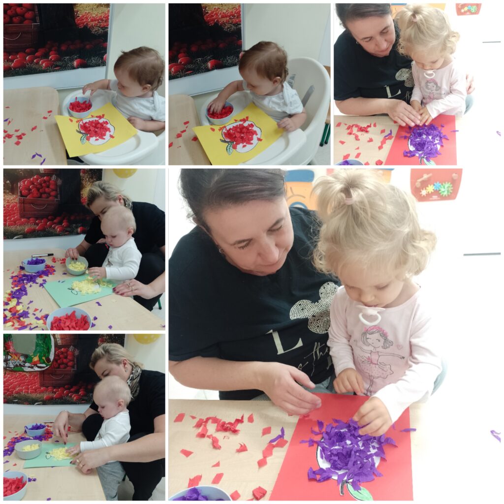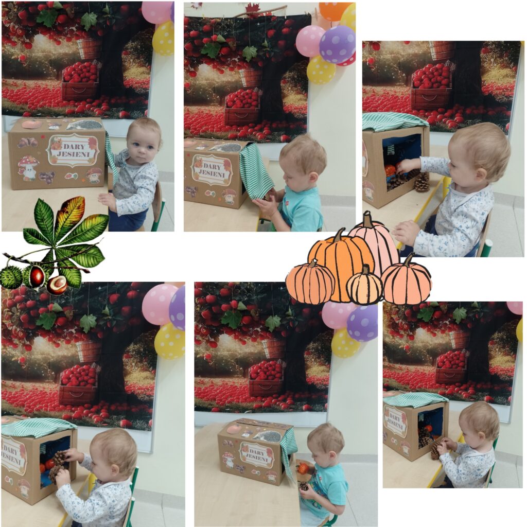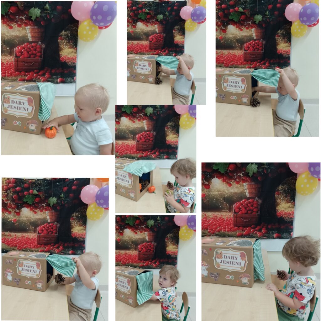 W ostatnim tygodniu września tematem przewodnim była jesień w sadzie. Smerfiki mogły zapoznać się z owocami przyniesionymi przez ciocie do koszyczka. Dzieci zapoznały się z wyglądem i kolorem takich owoców jak; gruszka, śliwka i jabłuszko. Maluszki kształtowały również zmysł smaku, węchu i wzroku oraz umiejętność wkładania i wyciągania owoców z koszyczka. We wtorek obchodziliśmy ,,Dzień Spadającego Liścia”. Dzieci podejmowały próby dmuchania kolorowych listków. Natomiast przy użyciu ,,Magicznego Dywanu” podziwiały piękne kolory jesiennych liści. Smerfiki wykonały pracę plastyczną pt. ,,Owoce jesienne”, ćwiczyły dopasowywanie kształtów, kolorowych układanek, sorterów oraz bawiły się kolorowymi klockami. Słuchaliśmy wiersza pt. ,,Wpadła gruszka do fartuszka” z wykorzystaniem rekwizytów. Na zajęciach sensoplastycznych Smerfiki zrobiły pachnący zielnik. Ciocie przygotowały różne przyprawy (natkę pietruszki, koperek, bazylię itp.), które dzieci wkładały do wcześniej przygotowanej skrzyneczki. Zabawa ta pobudziła dziecięcą wyobraźnię oraz zmysł smaku, węchu i dotyku. To był wesoły tydzień.