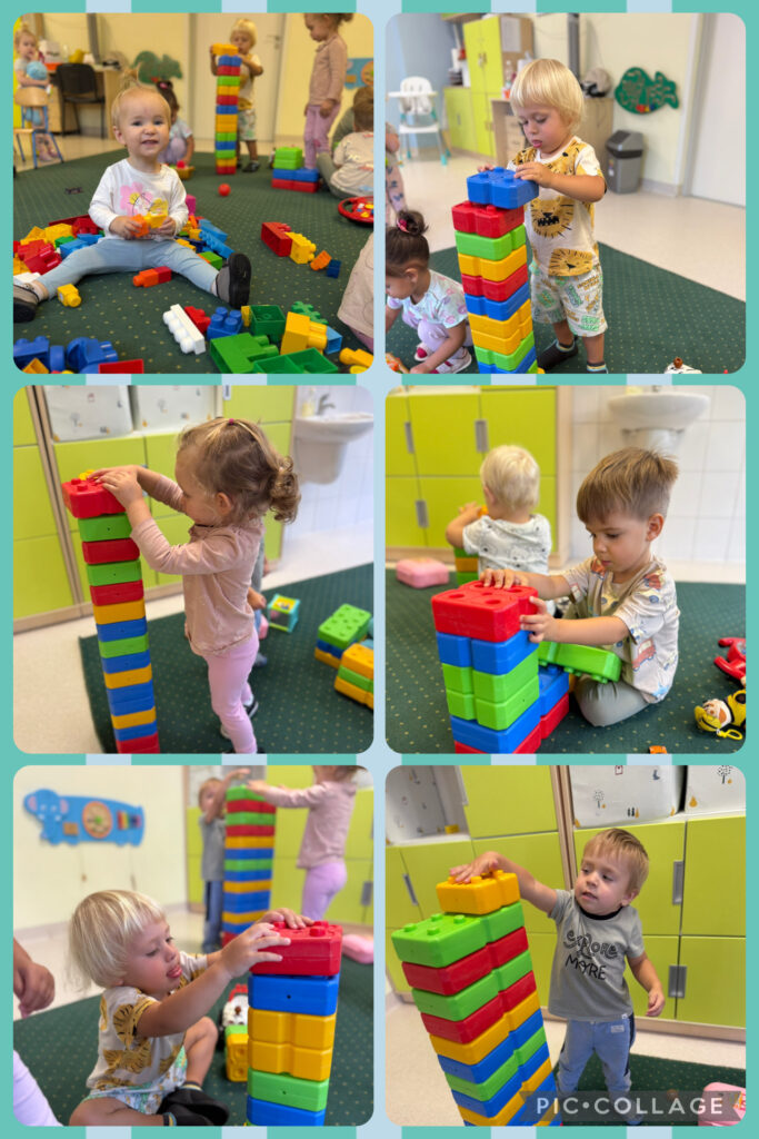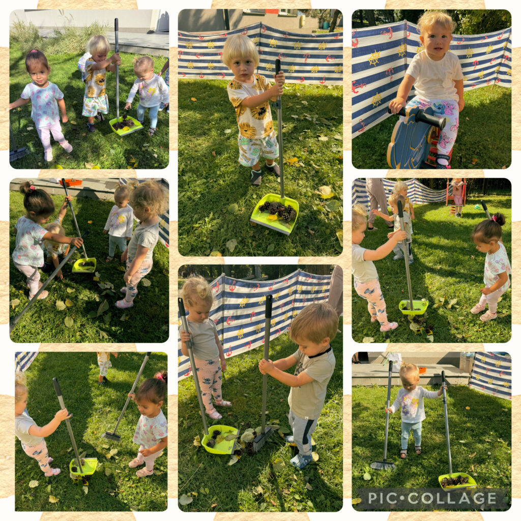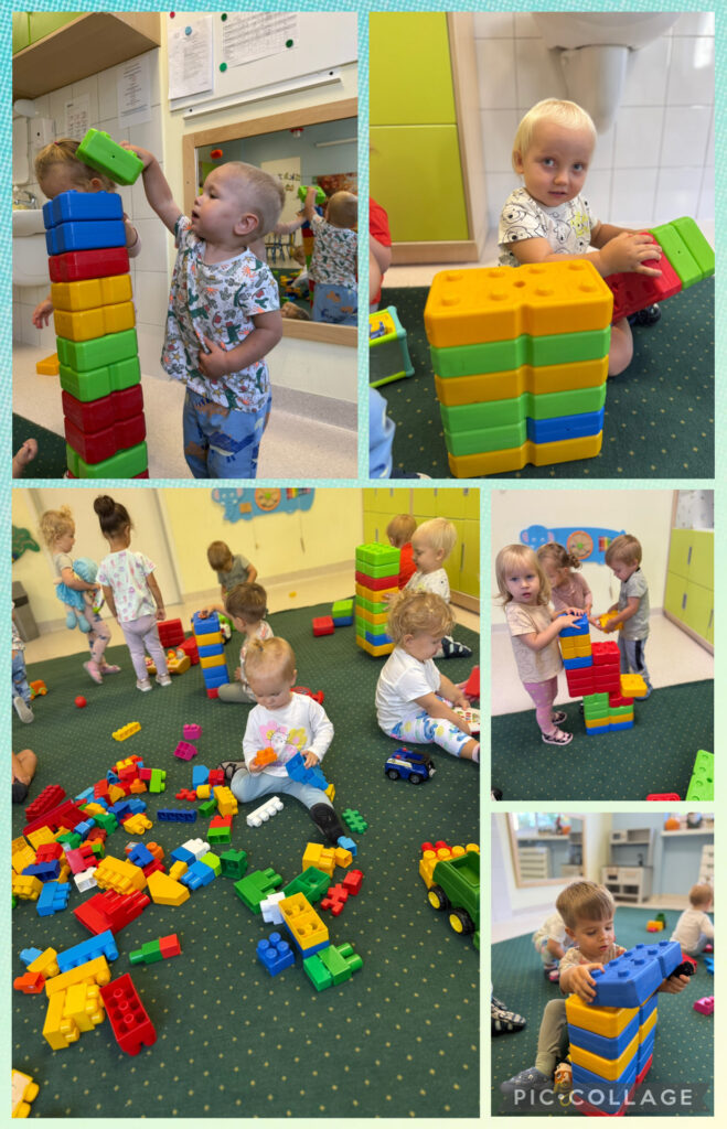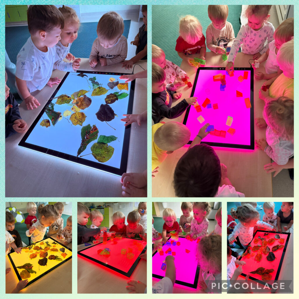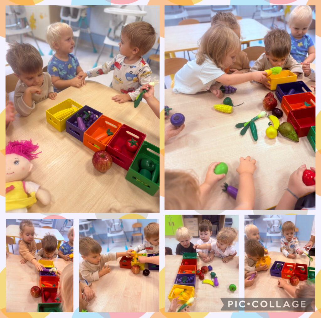 Skrzaty rozpoczęły tydzień radosnym powitaniem nowej pory roku – jesieni, która przybyła do nas z koszem pełnym swoich skarbów. Wspólnie obchodziliśmy Dzień Spadającego Liścia – podrzucaliśmy liście na chuście animacyjnej, dmuchaliśmy w wirujące listki, a na świeżym powietrzu zamiataliśmy je i zbieraliśmy szyszki. Nie zabrakło także twórczości – wykonaliśmy piękną pracę plastyczną „Owoce jesienne”, wyklejając je kolorowym papierem. Dzieci bawiły się również w sortowanie owoców i warzyw, rozwijając spostrzegawczość i umiejętność klasyfikowania. Podczas zajęć muzyczno-rytmicznych tańczyliśmy do jesiennych piosenek, m.in. „Dmucha wiatr”, ucząc się reagowania na tempo oraz naśladowania zjawisk pogodowych – wiatru, deszczu i innych.