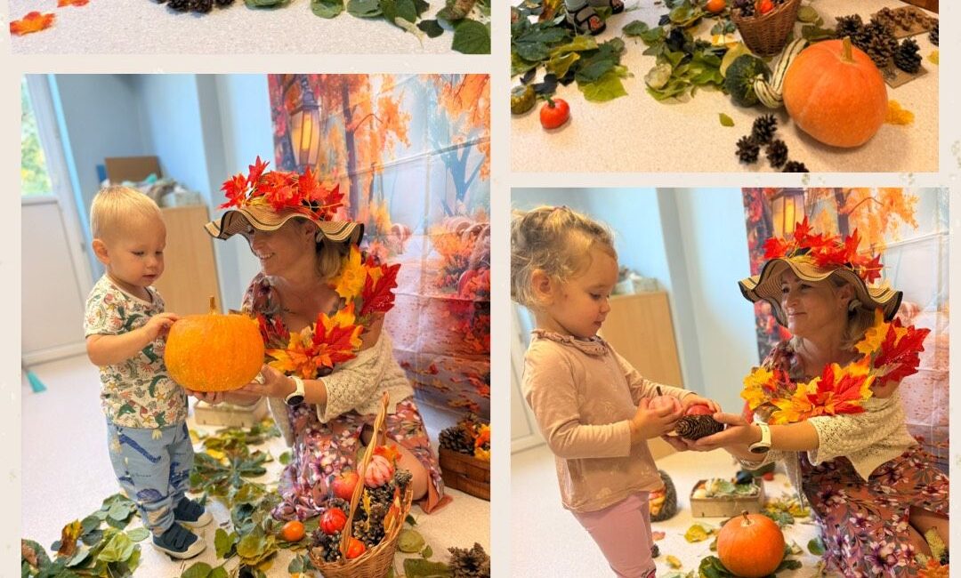 Skrzaty rozpoczęły tydzień radosnym powitaniem nowej pory roku – jesieni, która przybyła do nas z koszem pełnym swoich skarbów. Wspólnie obchodziliśmy Dzień Spadającego Liścia – podrzucaliśmy liście na chuście animacyjnej, dmuchaliśmy w wirujące listki, a na świeżym powietrzu zamiataliśmy je i zbieraliśmy szyszki. Nie zabrakło także twórczości – wykonaliśmy piękną pracę plastyczną „Owoce jesienne”, wyklejając je kolorowym papierem. Dzieci bawiły się również w sortowanie owoców i warzyw, rozwijając spostrzegawczość i umiejętność klasyfikowania. Podczas zajęć muzyczno-rytmicznych tańczyliśmy do jesiennych piosenek, m.in. „Dmucha wiatr”, ucząc się reagowania na tempo oraz naśladowania zjawisk pogodowych – wiatru, deszczu i innych.