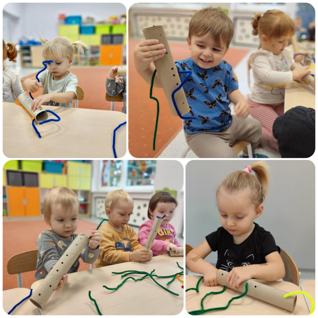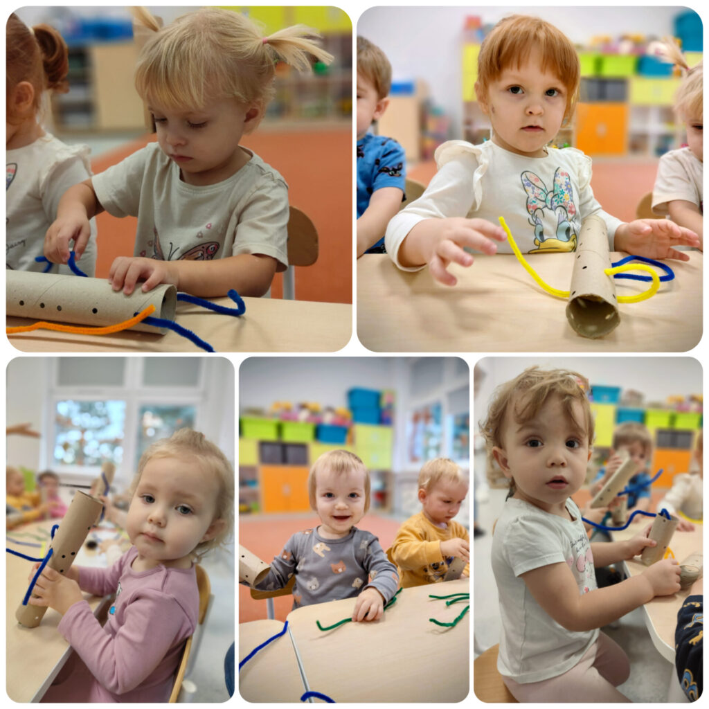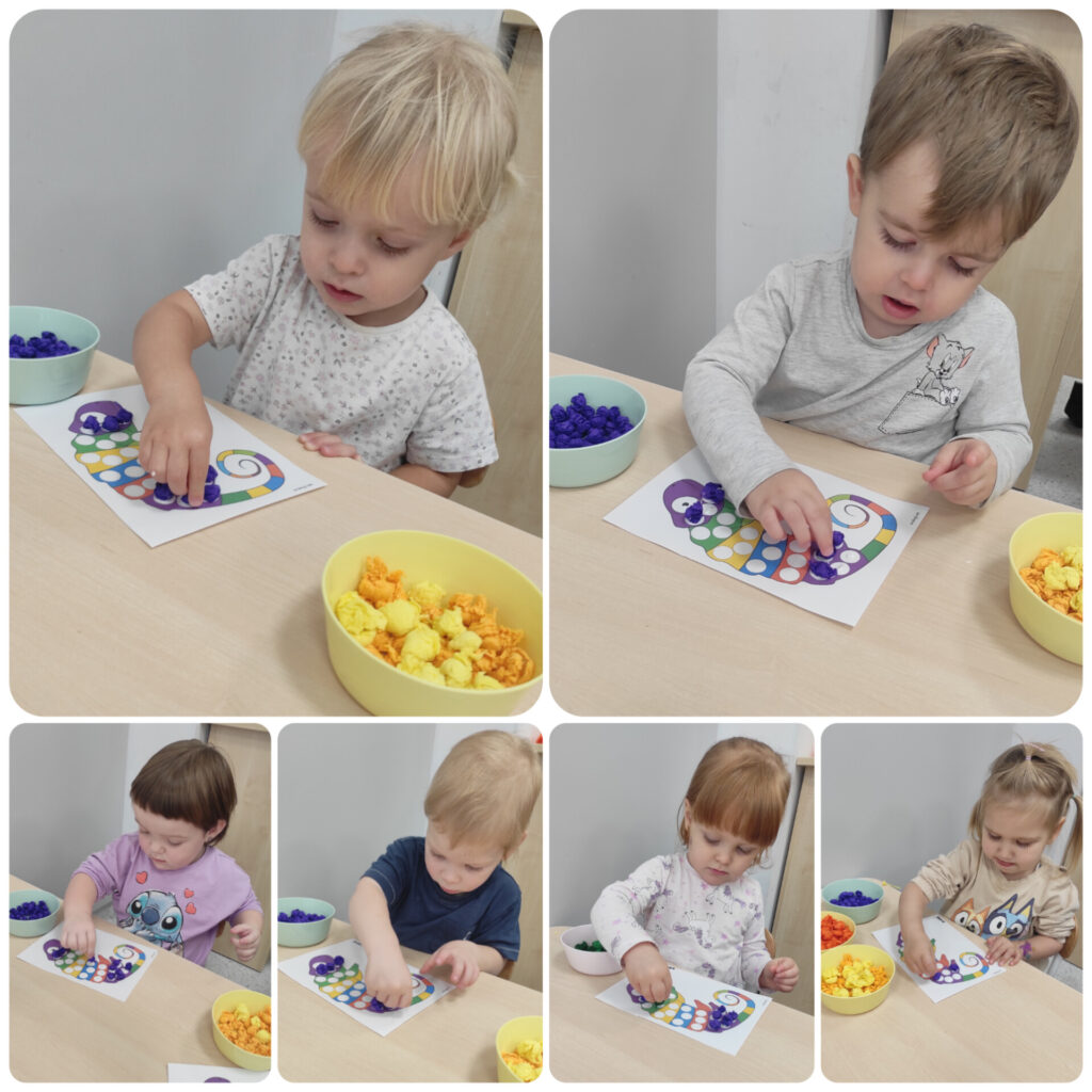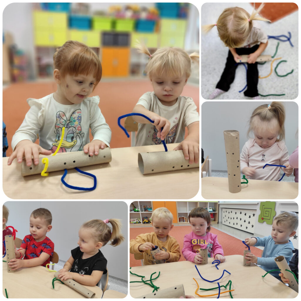 W tym tygodniu Sówki poznały zwierzęta domowe. Poznaliśmy nowe piosenki: „My jesteśmy kotki dwa…”, „Mała Tereska dostała pieska…”, „Pieski małe dwa…”. Wysłuchaliśmy również wiersze o pieskach. Wykonaliśmy pracę plastyczną: wyklejanka. Dopasowywaliśmy również cienie zwierzątek rozwijając percepcję wzrokową. W piątek obchodziliśmy Dzień Kundelka i z tej okazji poznaliśmy nowe piosenki oraz były zabawy tematyczne. W tym tygodniu odbyły się zajęcia z sensoplastyki: Barwne druciki. Przez cały tydzień towarzyszyły nam zabawy muzyczno – ruchowe oraz dowolne zabawy.
