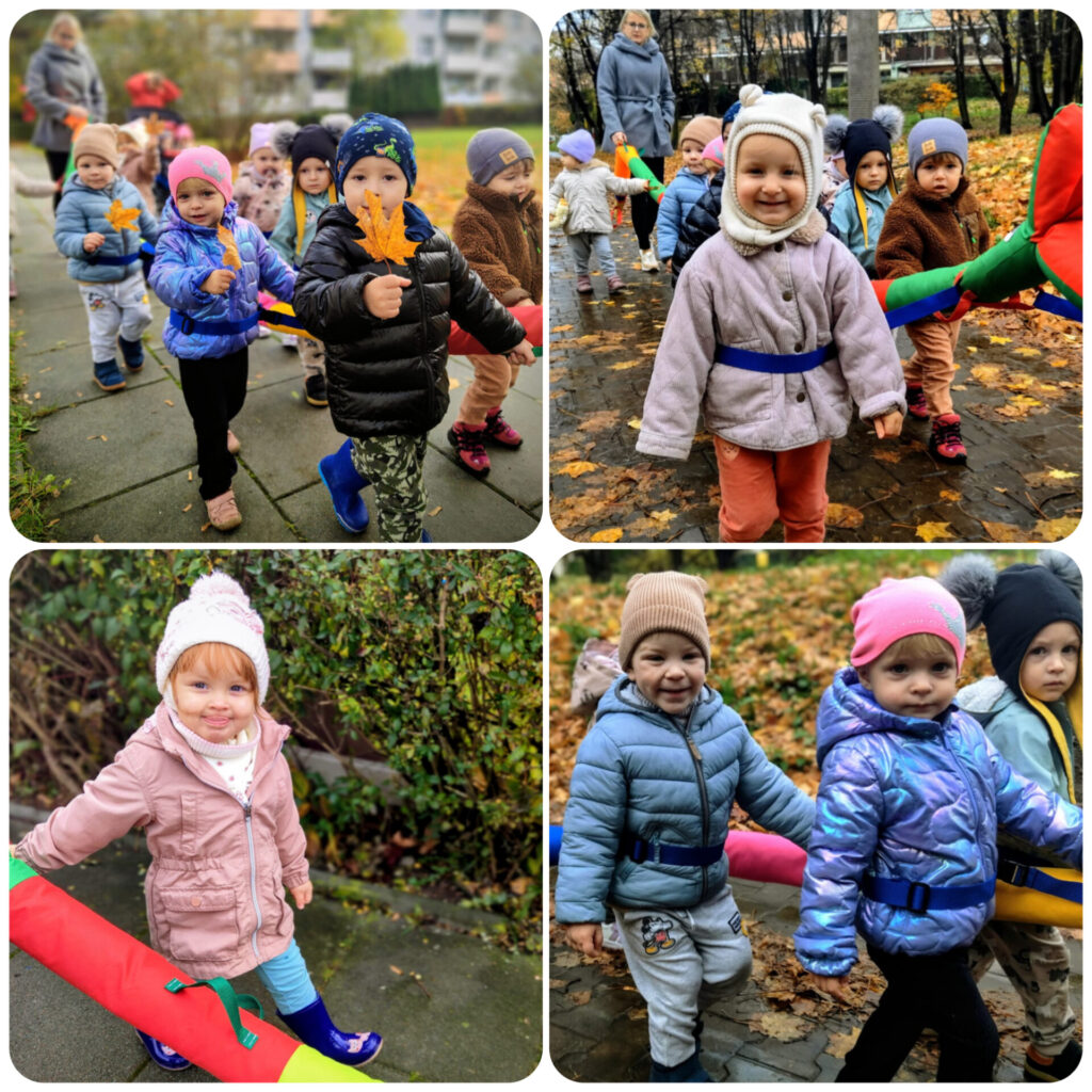 W tym tygodniu Sówki obserwowały zmiany zachodzące w przyrodzie. Korzystając z pięknej jesiennej pogody wybraliśmy się na spacer, aby podziwiać naturę. W tym tygodniu poznaliśmy piosenkę „Pada deszcz, pada deszcz na dworze …” Była również zabawa bieżna, podczas której jeździliśmy samochodzikami w deszczu oraz bawiliśmy się w zabawy ruchowe z wykorzystaniem parasola. Utrwalaliśmy zjawiska występujące jesienią tj.: wiejący wiatr, padający deszcz. Zapoznaliśmy się z elementami stroju typowego dla jesiennej aury. Uczyliśmy się klasyfikować liście według kolorów i wielkości. W środę odbyły się zajęcia z rytmiki „My jesteśmy krasnoludki”, a w piątek obchodziliśmy Dzień Dyni. Z tej okazji poznaliśmy piosenkę „Dynia Dana” oraz wykonaliśmy tematyczną pracę plastyczną. Zapoznaliśmy się również w wyglądem dyni.