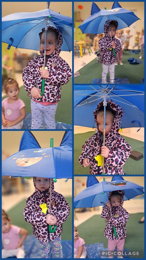 Uczyliśmy się wspólnie dopasowywać elementy stroju typowego dla jesiennej aury. Przez cały tydzień rozwijaliśmy sprawność fizyczną oraz ćwiczyliśmy równowagę przeskakując kałużę.