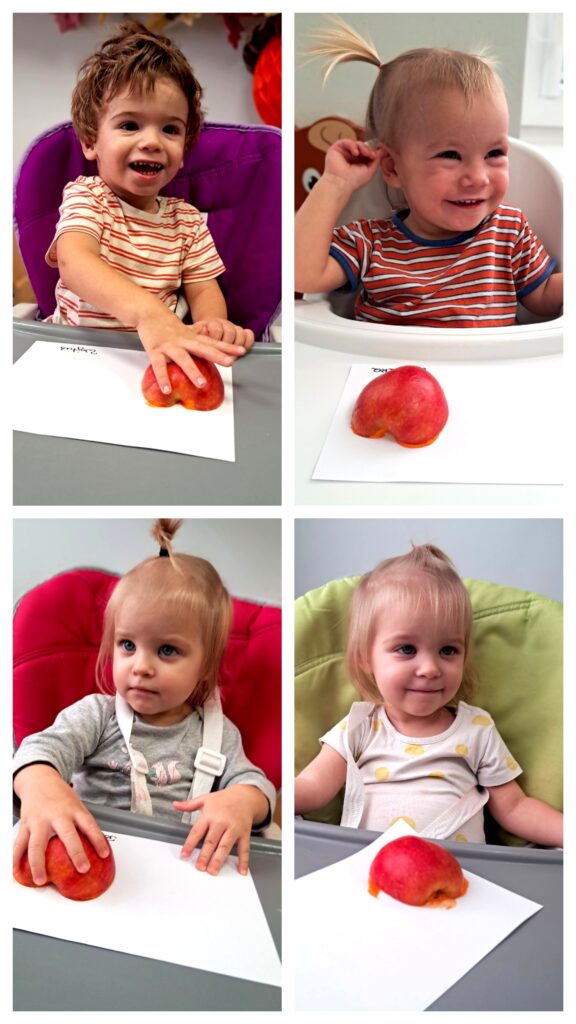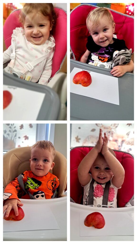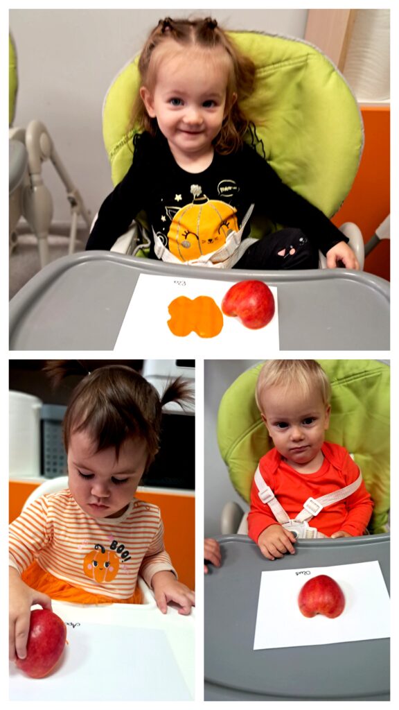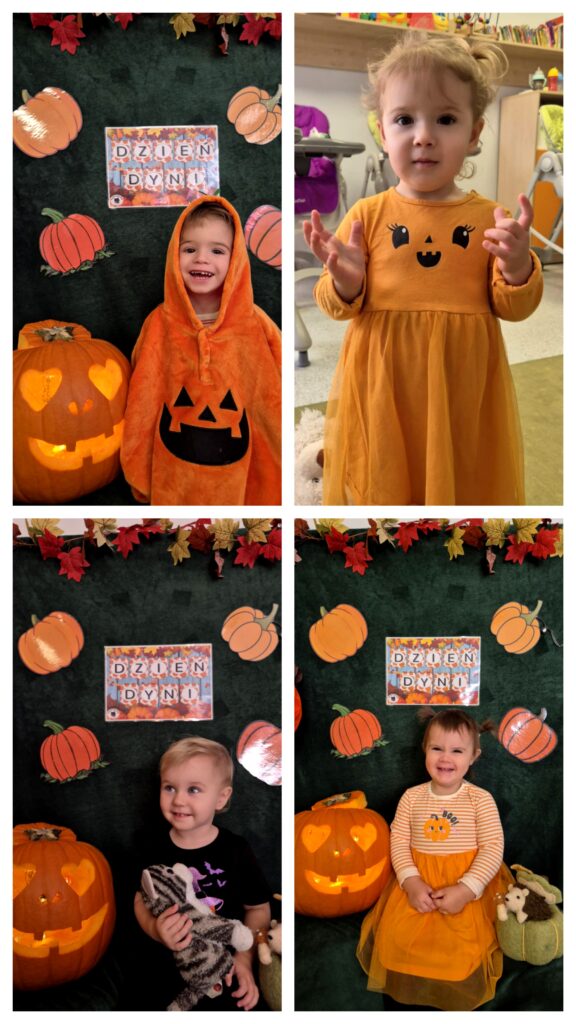 W piątek obchodziliśmy DZIEŃ DYNI i z tej okazji wykonaliśmy pracę plastyczną: dynię. Na kartce odbijaliśmy pomalowaną na pomarańczowo połówkę jabłuszka tworząc dynie. Praca była inspiracja do tego, aby zapoznać dzieci z wyglądem, kolorem i zapachem dyni.