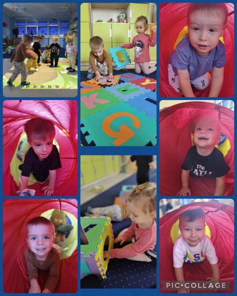 W trakcie zabaw muzyczno-rytmicznych dzieci z zaangażowaniem naśladowały maszerujące krasnoludki, a cały tydzień zakończyliśmy wspólnym czytaniem bajek oraz zabawami z chustą animacyjną, które sprzyjały budowaniu więzi w grupie i rozwijaniu zainteresowań literaturą dziecięcą.