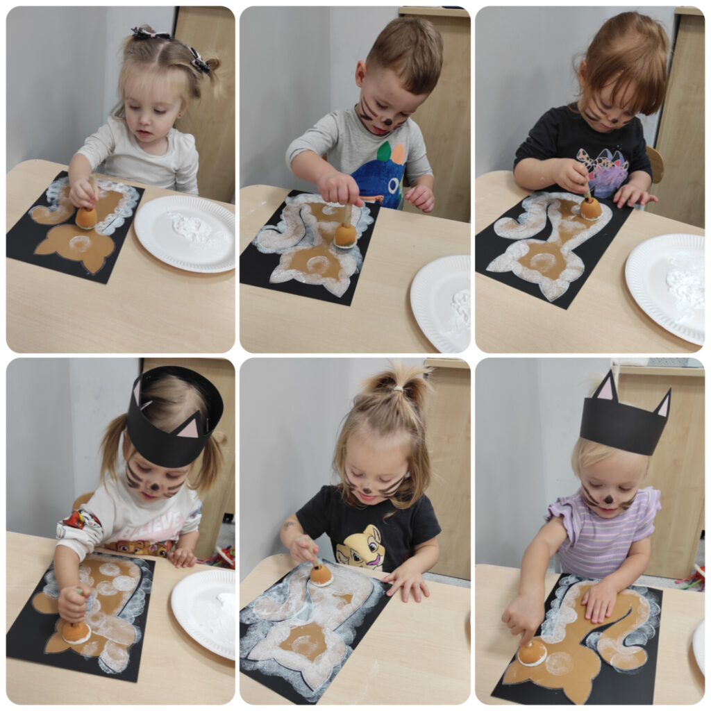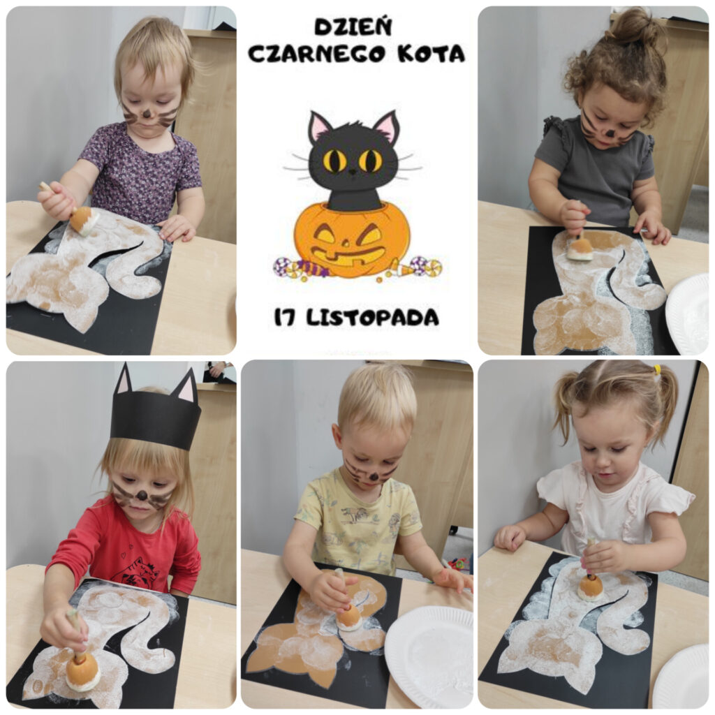 W poniedziałek obchodziliśmy Dzień Czarnego Kota. wykonaliśmy pracę plastyczną: Czarnego Kota. Dzieci słuchając piosenki „Coś ty kotku chciał” czworakowały w rytm muzyki.