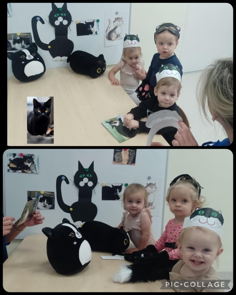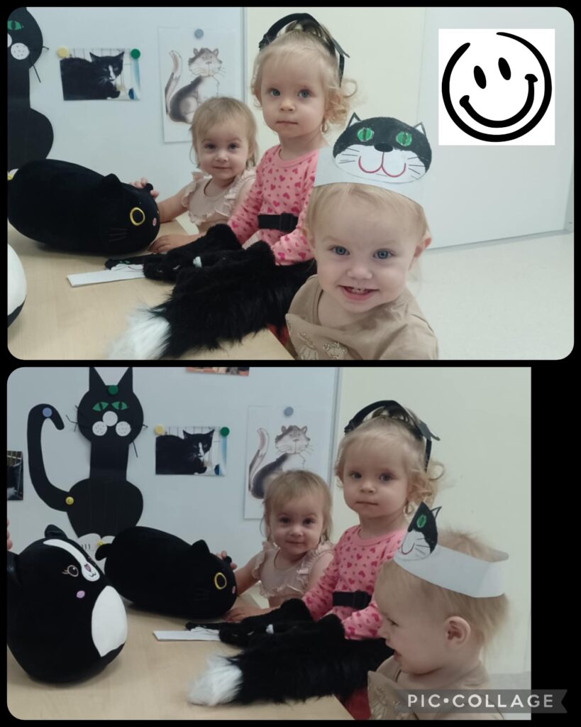 W Poniedziałek obchodziliśmy ,,Dzień Czarnego Kota”. Smerfiki zapoznały się z wyglądem kotka, poznały odgłosy jakie wydaje nasz mruczący przyjaciel oraz jego sposób poruszania się.