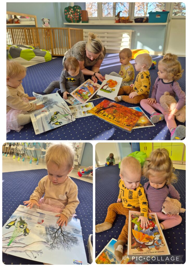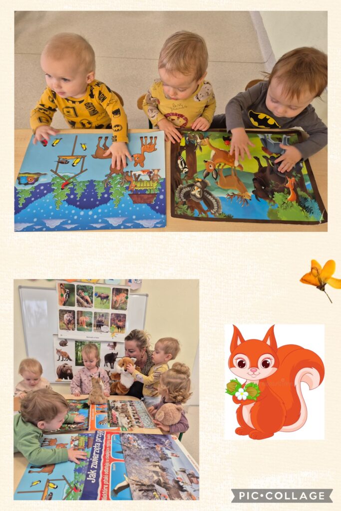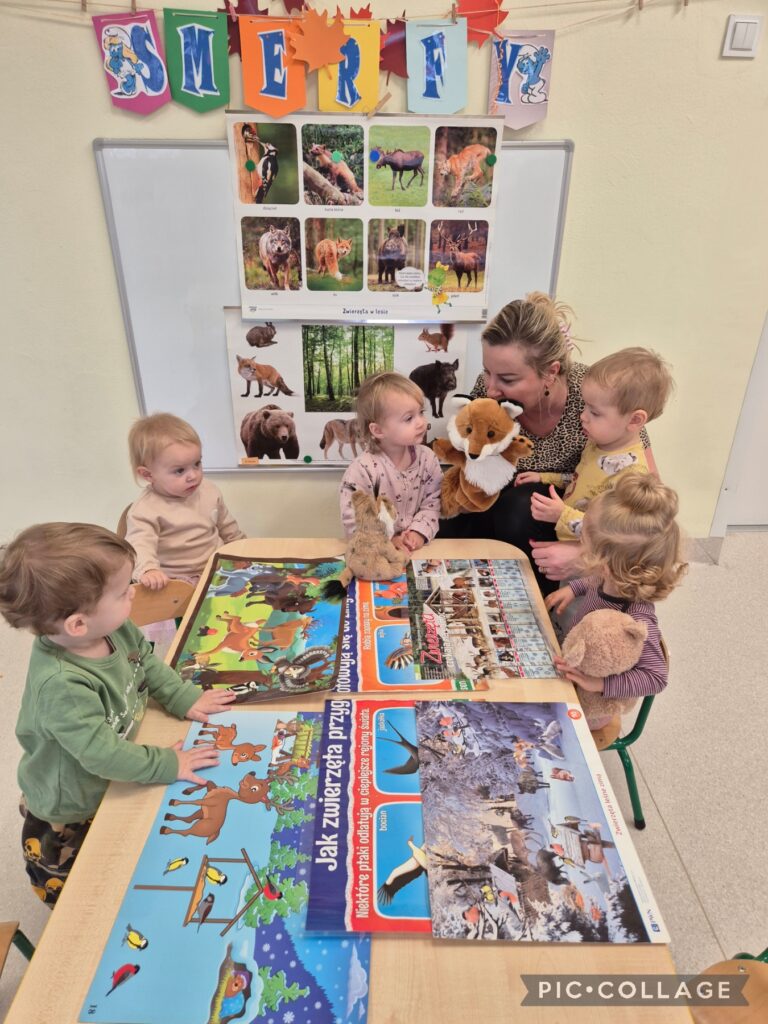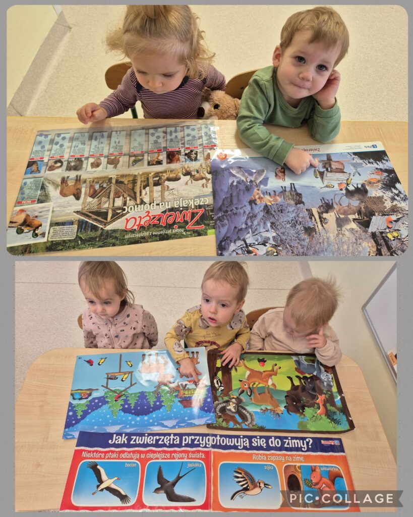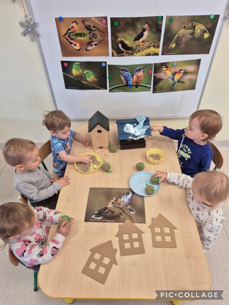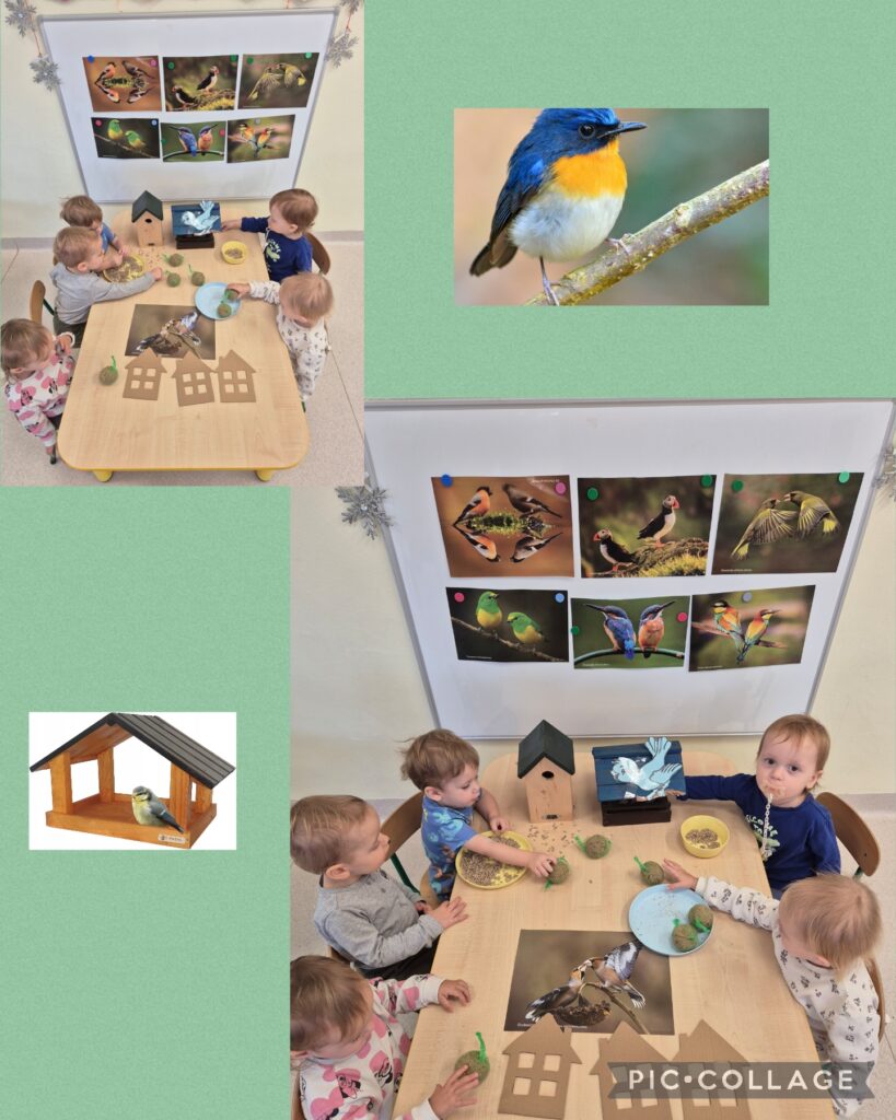 W tym tygodniu Smerfiki kształtowały opiekuńczą postawę wobec ptaków i zwierząt leśnych, które potrzebują naszej pomocy zimą. Dzieci zapoznały się z wyglądem karmnika do którego wsypywały ziarenka. Oglądaliśmy również obrazki o jesieni i zbliżającej się porze roku zimy.