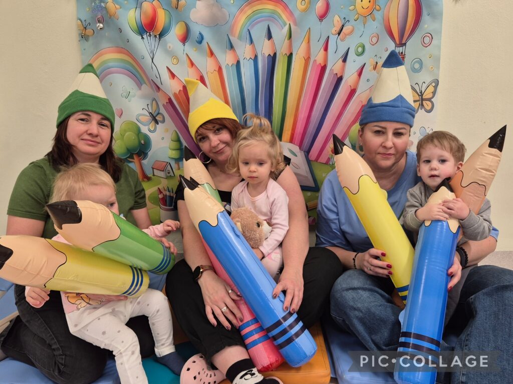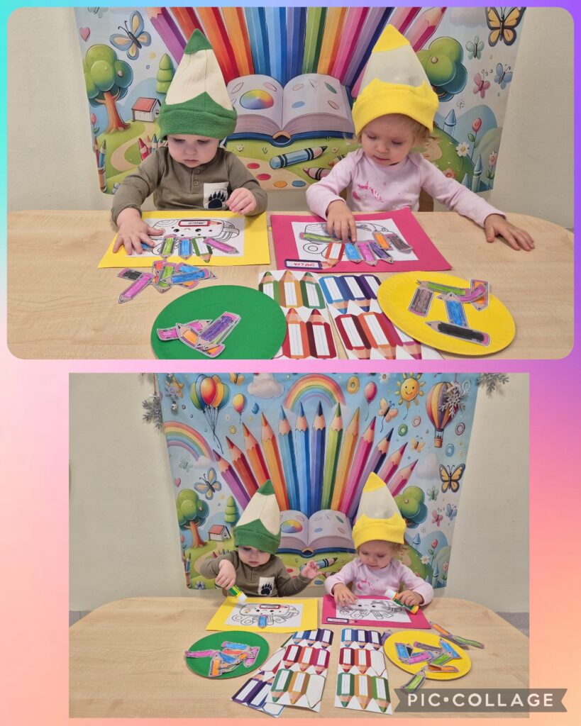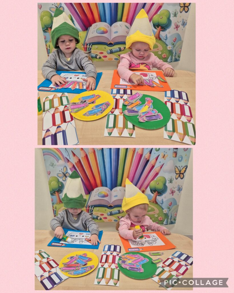Na zajęciach muzyczno – rytmicznych rozwijaliśmy aktywność muzyczno-ruchową oraz umiejętności naśladowania ruchów określonej czynności. W tym tygodniu obchodziliśmy także „Dzień Kredki”, z tej okazji dzieci wspólnie z opiekunkami wykonały ciekawą, kolorową pracę plastyczną.
