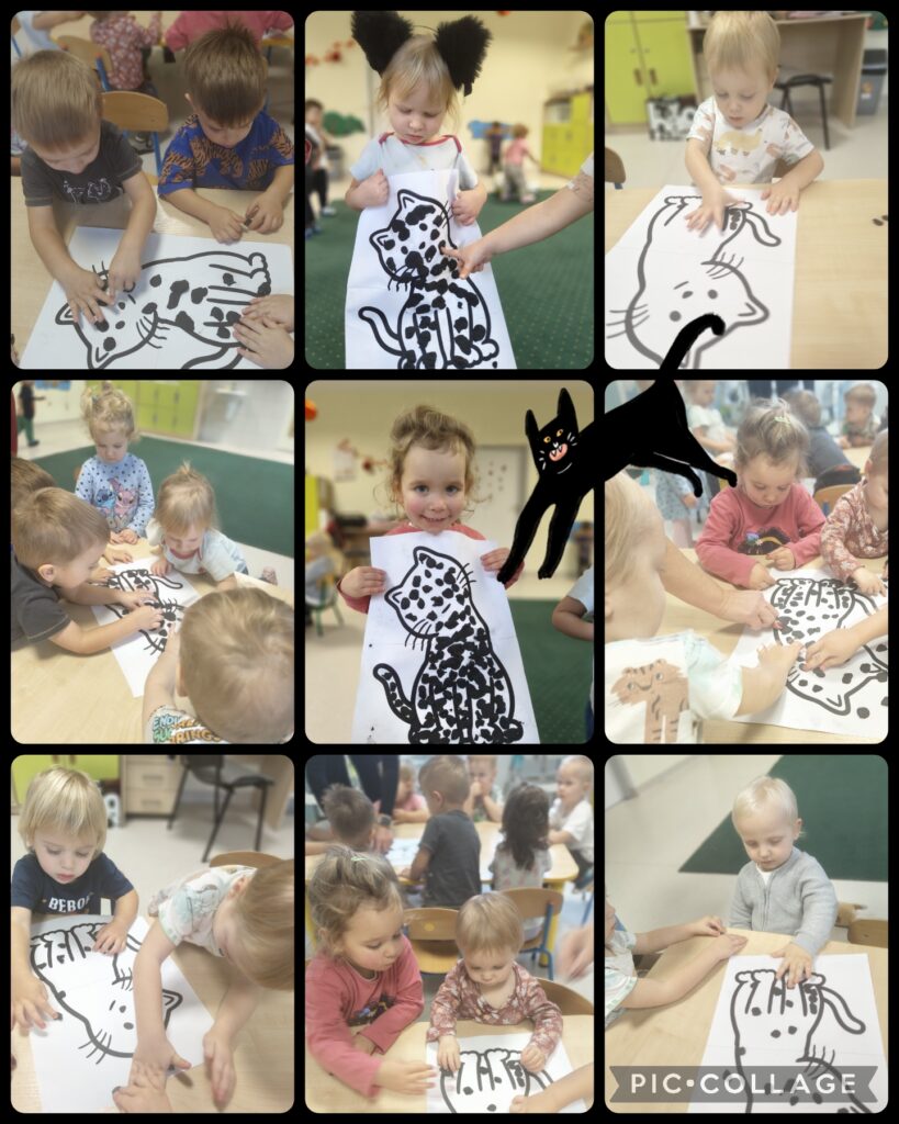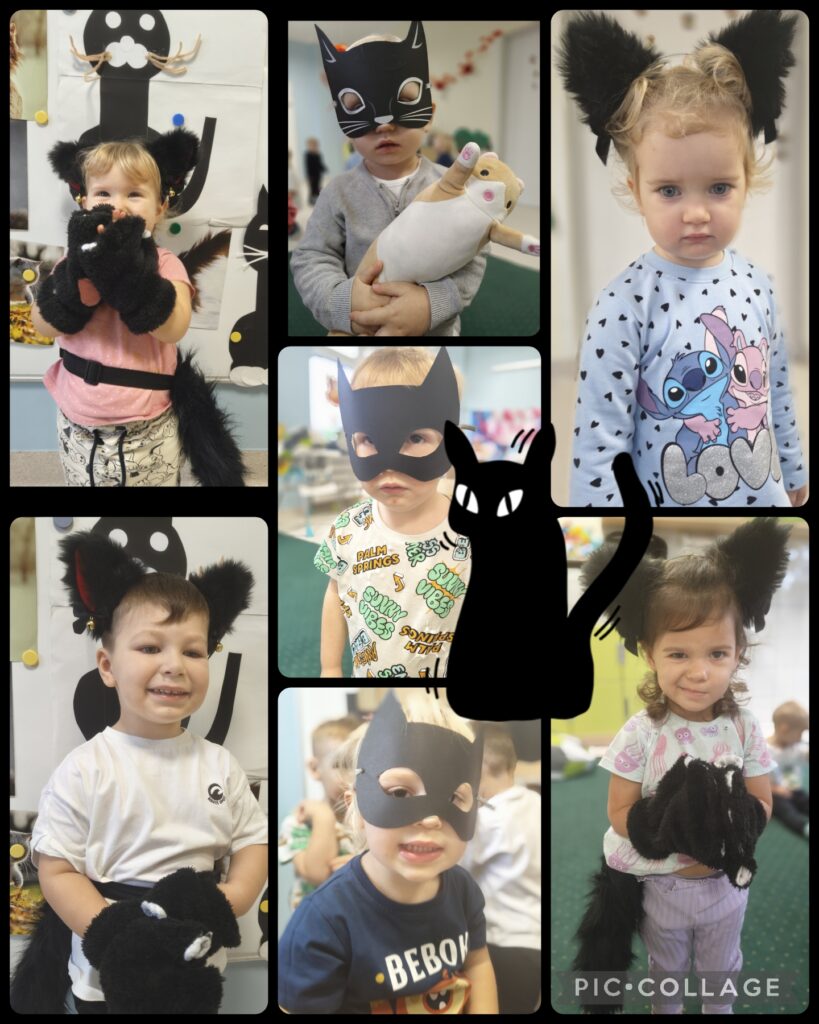 Za nami również kilka nietypowych dni. Obchodziliśmy “Dzień Czarnego Kota”. Poznawaliśmy zwyczaje kotów, oglądaliśmy ilustracje oraz bawiliśmy się w „kocie zabawy”, rozwijając ruch i wyobraźnię. Podczas „Międzynarodowego Dnia Praw Dziecka” rozmawialiśmy o tym, że każde dziecko jest ważne, ma swoje prawa i zasługuje na szacunek oraz troskę. Natomiast “Dzień Kredki” pozwolił szczególnie rozwinąć sprawność manualną i kreatywność poprzez kolorowanie, rysowanie i eksperymentowanie kredkami.