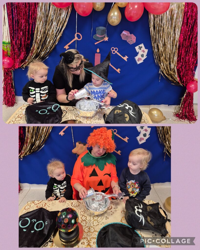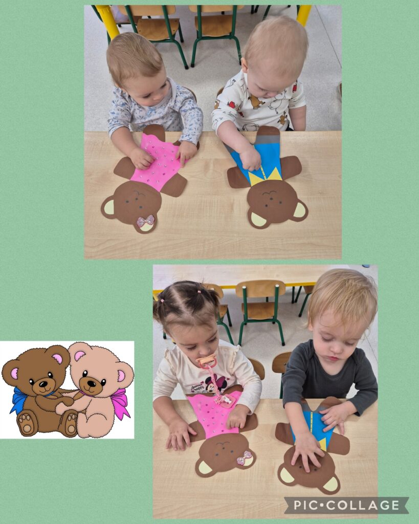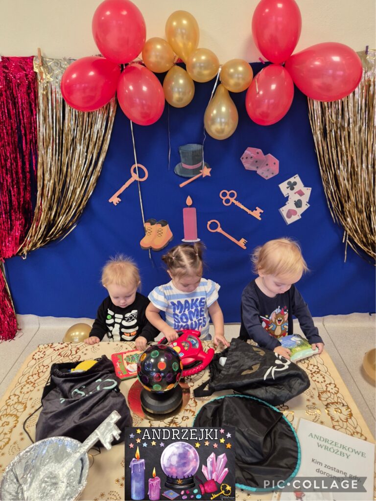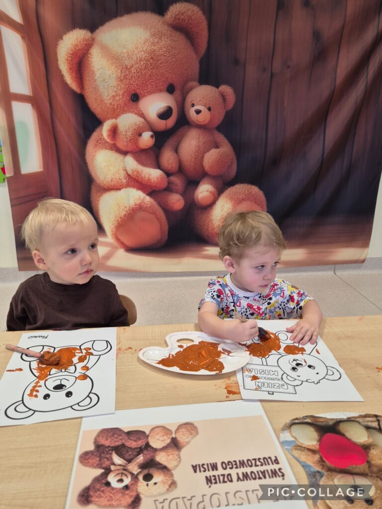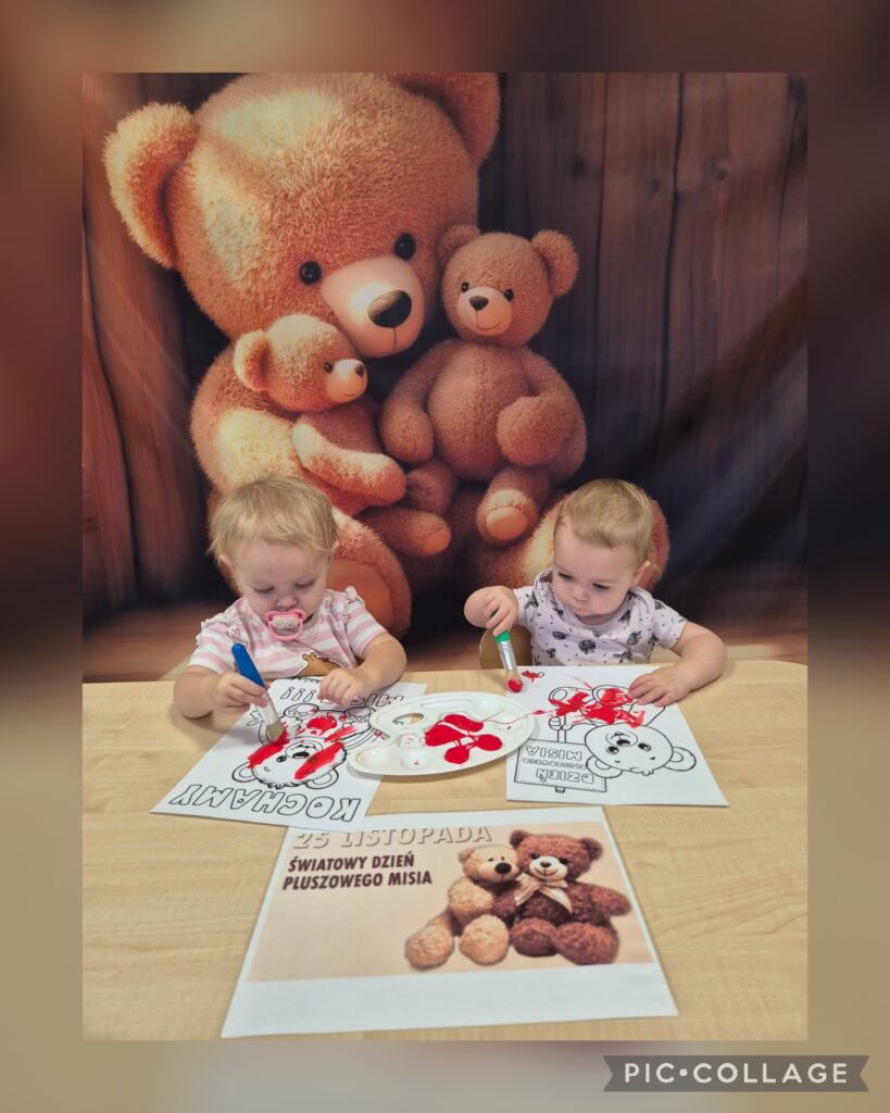W tym tygodniu obchodziliśmy „Dzień pluszowego misia”. Dzieci zapoznały się z wyglądem misia, wskazywaliśmy jego części ciała oraz ubieraliśmy misia, ćwicząc przy tym sprawność manualną rączek. Czytaliśmy także misiowe bajki i wierszyki jak również poznaliśmy misie z różnych bajek. Z tej okazji dzieci wykonały pracę plastyczną ,,kolorowego misia”, a także wzięły udział w mini sesji zdjęciowej. Na zajęciach sensoplastycznych opiekunki przykleiły na kole taśmę tworząc kilka pętli do których dzieci przyklejały kolorowe piłeczki. Smerfiki rozwijały koordynację wzrokowo-ruchową. W piątek odbyła się u nas zabawa andrzejkowa. Było magicznie i wesoło, zabawa sprawiła smerfikom dużo radości.