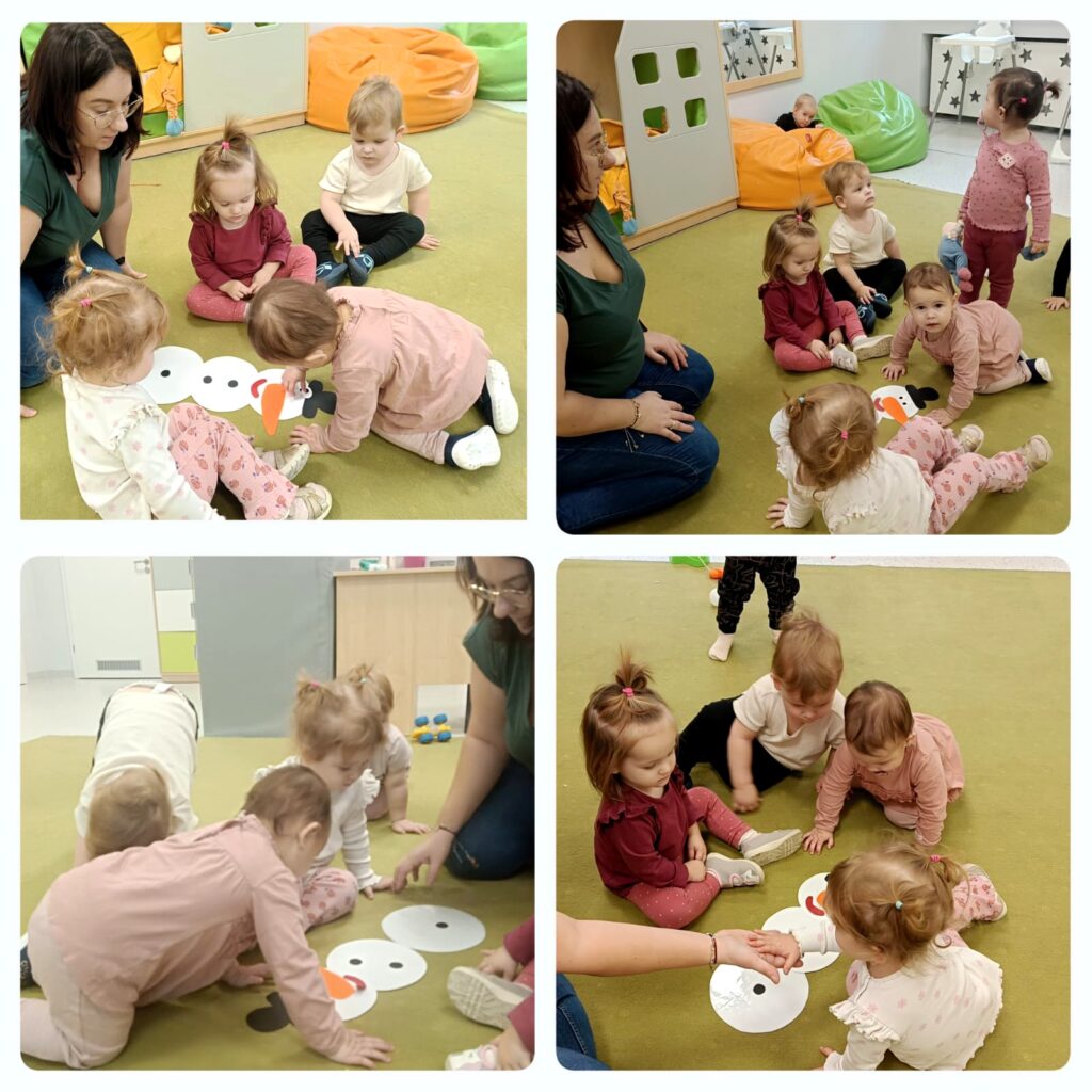 We wtorek tworzyliśmy śnieżne kule poprzez gniecenie papieru i formowanie go z pomocą opiekunek. Ćwiczyliśmy sprawność naszych rączek. Podczas bitwy na śnieżynki rozwijaliśmy koordynację ruchową i umiejętność trafiania do celu.