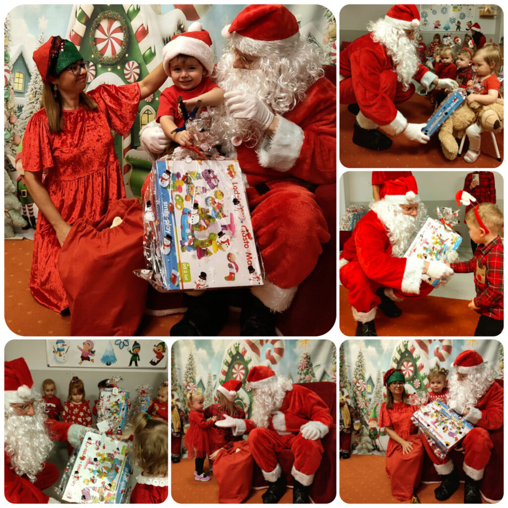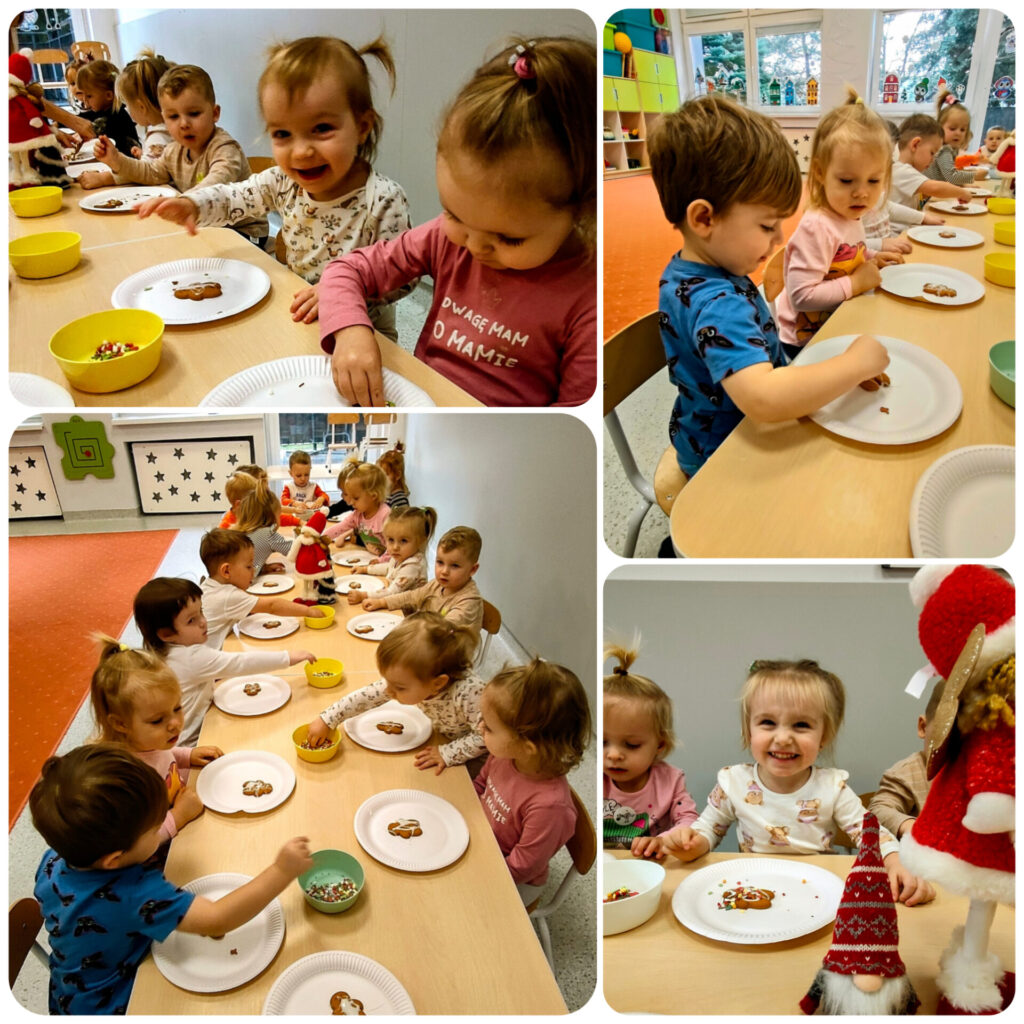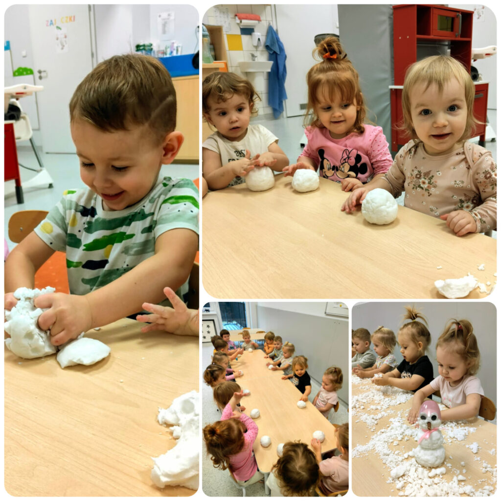 W tym tygodniu Sówki poznały zimowe zabawy muzyczno – taneczne oraz zimowe piosenki. We wtorek wykonaliśmy pracę plastyczną „List do Mikołaja”. Odbyły się ćwiczenia oddechowe oraz „bitwa na Śnieżynki” czyli ćwiczenia koordynacji ruchowej i umiejętność trafiania do celu. W środę ozdabialiśmy pierniczki, które potem stały się prezentem dla naszych gości. W czwartek obchodziliśmy Barbórkę i z tej okazji wykonaliśmy pracę plastyczną „czapka górnika”. W piątek przyszedł do nas długo wyczekiwany gość, było uroczyste powitanie i wspólna zabawa z Mikołajem. Wszystkie dzieci zostały obdarowane przez Mikołaja prezentami, a my wręczyliśmy mu nasze pierniczki. W ramach zajęć sensoplastycznych była zabawa “sztucznym śniegiem”, która dała Sówkom wiele radości. Przez cały tydzień towarzyszyły nam zabawy muzyczno – ruchowe oraz dowolne zabawy.