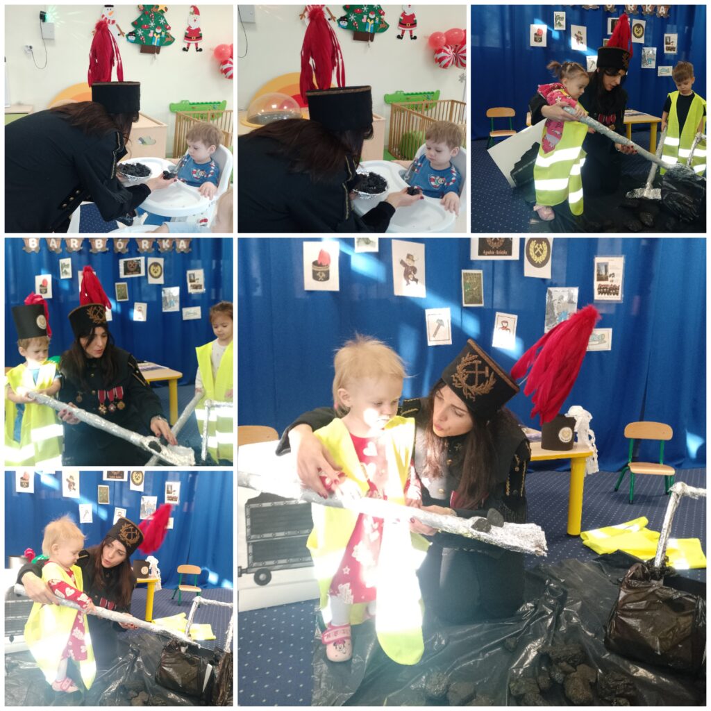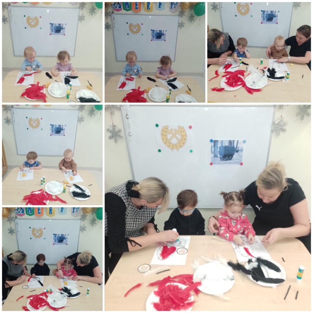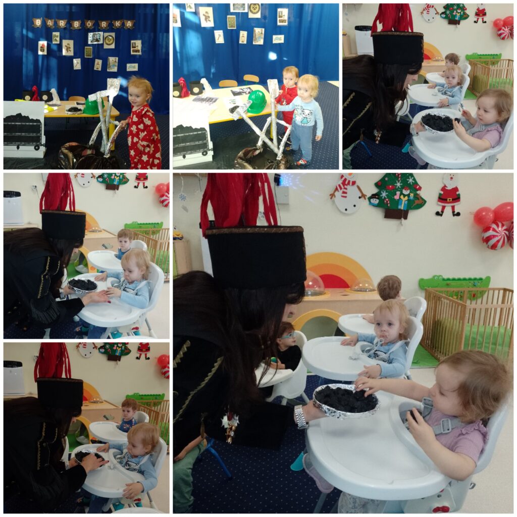 W tym tygodniu w naszej Smerfnej wiosce było bardzo dużo atrakcji. W poniedziałek zapoznaliśmy się z wyglądem bałwanka, również ciocie przedstawiły dzieciom rekwizyty związane z zimową porą roku. Były ćwiczenia oddechowe poprzez dmuchanie śnieżynek oraz podejmowaliśmy próby segregowania skarpetek do pary. Na zajęciach muzyczno- rytmicznych tańczyliśmy do piosenki pt. ,,Gimnastyka bałwanków”. W środę maluszki poznały postać Św. Mikołaja. Na tę okazję dzieci wykonały śliczne prace plastyczne pt. ,,List do Mikołaja”. Wszystkie piękne listy trafiły do naszej magicznej pocztowej skrzyneczki, którą ,,Elfik” na pewno dostarczy pod właściwy adres. W czwartek 4 grudnia obchodziliśmy Barbórkę. Ciocie starały się wytłumaczyć naszym maluszkom na czym polega praca górnika. Dzieci poznawały postać górnika poprzez różne rekwizyty oraz kolorowe ilustracje. Na tę okazję wykonaliśmy pracę plastyczną pt. ,,Czapka górnika”.