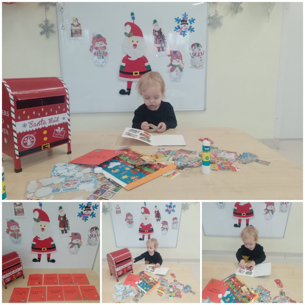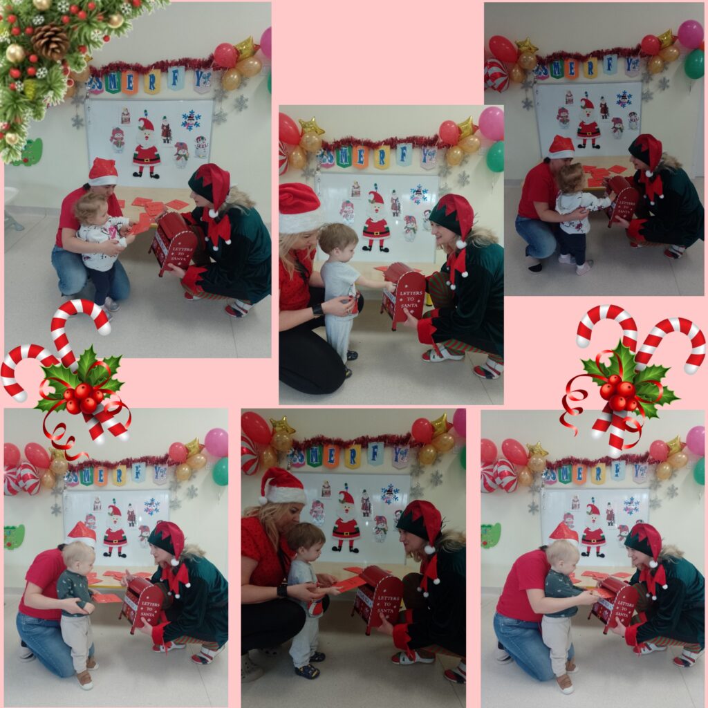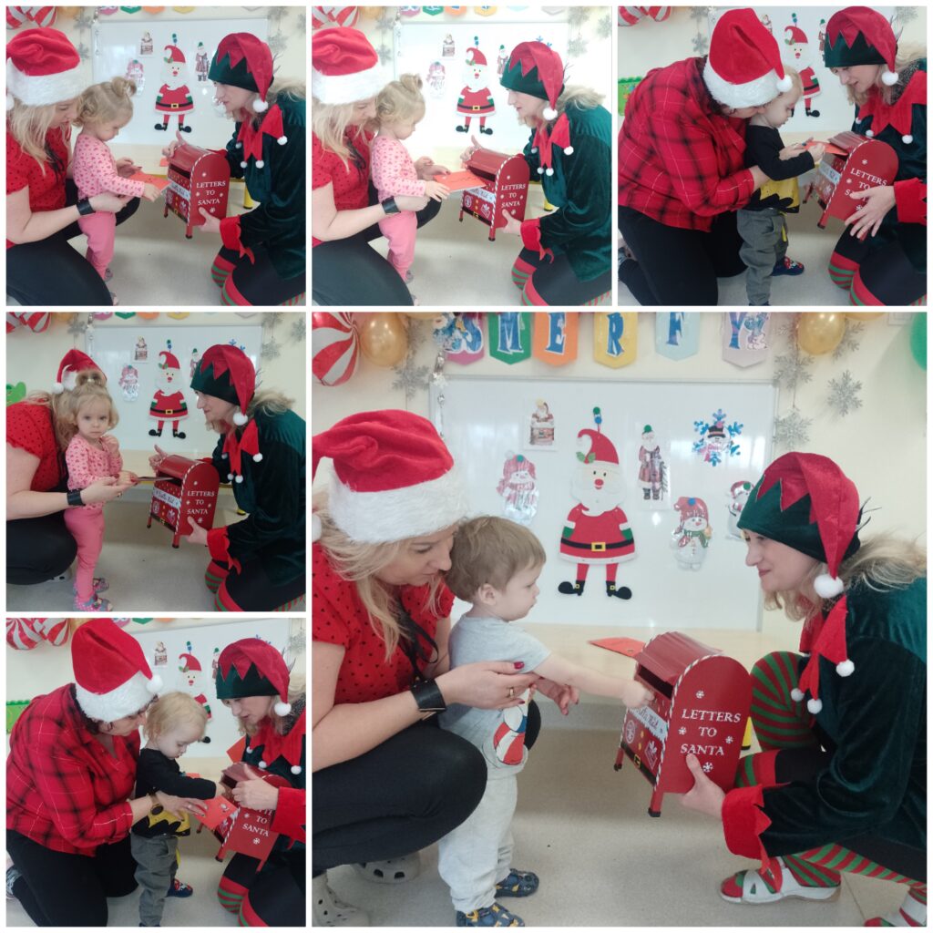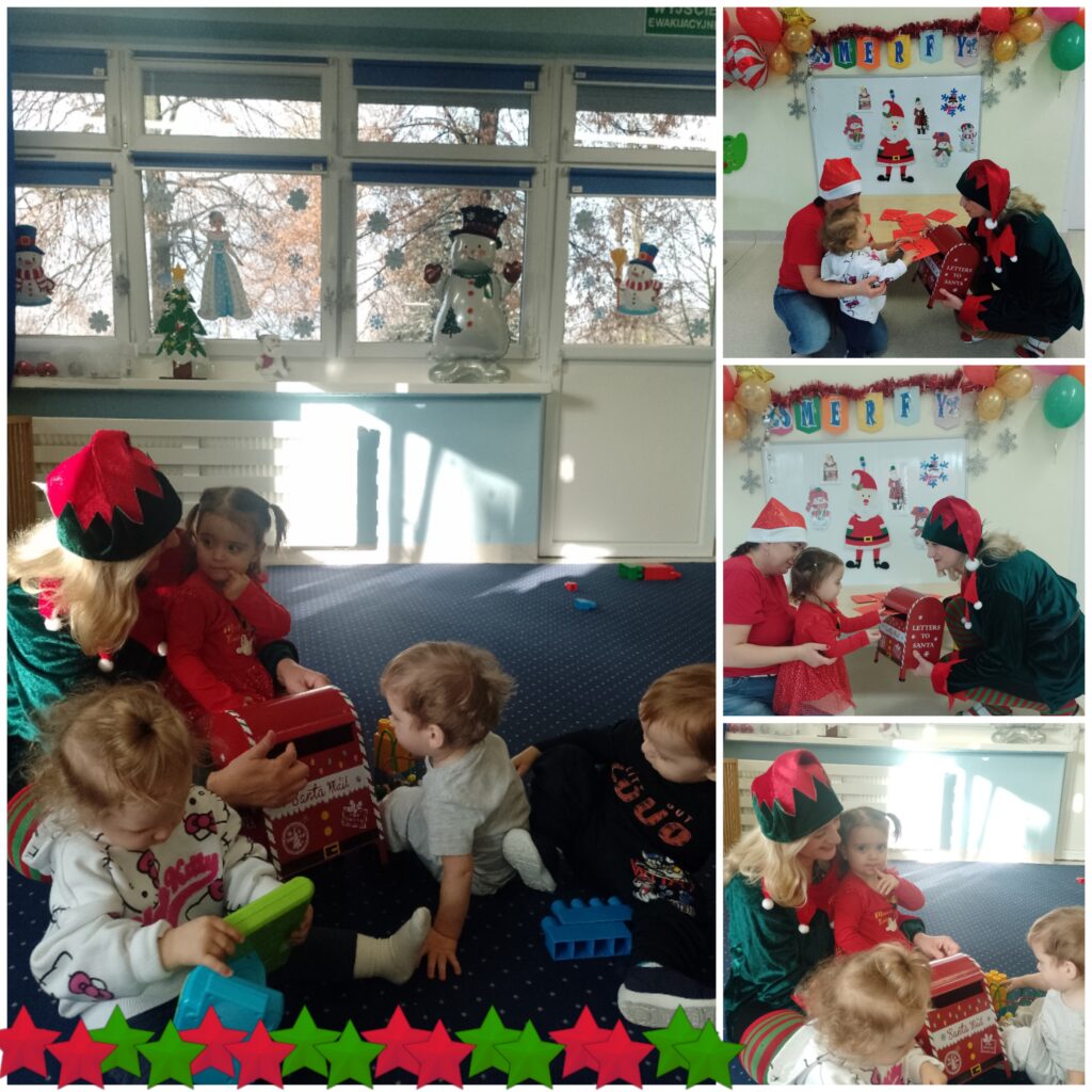 W tym tygodniu w naszej Smerfnej wiosce było bardzo dużo atrakcji. W poniedziałek zapoznaliśmy się z wyglądem bałwanka, również ciocie przedstawiły dzieciom rekwizyty związane z zimową porą roku. Były ćwiczenia oddechowe poprzez dmuchanie śnieżynek oraz podejmowaliśmy próby segregowania skarpetek do pary. Na zajęciach muzyczno- rytmicznych tańczyliśmy do piosenki pt. ,,Gimnastyka bałwanków”. W środę maluszki poznały postać Św. Mikołaja. Na tę okazję dzieci wykonały śliczne prace plastyczne pt. ,,List do Mikołaja”. Wszystkie piękne listy trafiły do naszej magicznej pocztowej skrzyneczki, którą ,,Elfik” na pewno dostarczy pod właściwy adres. W czwartek 4 grudnia obchodziliśmy Barbórkę. Ciocie starały się wytłumaczyć naszym maluszkom na czym polega praca górnika. Dzieci poznawały postać górnika poprzez różne rekwizyty oraz kolorowe ilustracje. Na tę okazję wykonaliśmy pracę plastyczną pt. ,,Czapka górnika”.