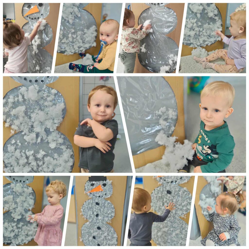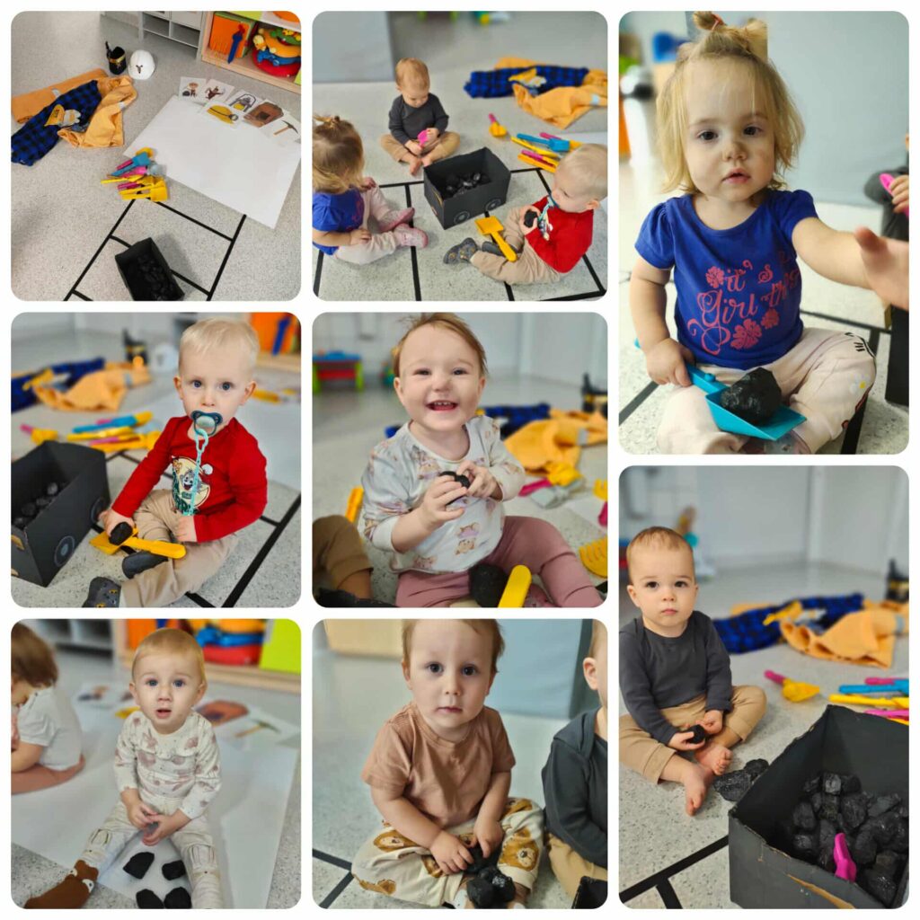 Pierwszy tydzień grudnia Niedźwiadki spędziły na świętowaniu urodzin Emilki oraz Barbórki. Cały tydzień poznawaliśmy nową porę roku: zimę, poprzez przedstawienie ilustracji, rekwizytów, występujących zjawisk atmosferycznych oraz piosenek. Zapoznaliśmy się z wyglądem bałwanka. Doskonaliliśmy poczucie rytmu w czasie grania na instrumentach. W środę na zajęciach sensoplastycznych dzieci za pomocą wypełniacza do poduszek stworzyły swojego pierwszego bałwana. W czwartek świętowaliśmy Barbórkę, odbyliśmy swoją pierwszą szychtę. Dzieci przy pomocy węgla i wagoniku mogły jeździć po torach, ładować węgiel do wagonika oraz rysować nim po kartce. Poznaliśmy ubiór górnika oraz jego atrybuty. Wykonaliśmy także czapkę górnika. W piątek z okazji Mikołajek odwiedził nas niezwykły gość Mikołaj. Dzieci przygotowały pierniczki dla Mikołaja oraz marchewkę dla reniferów. Nasz Gość przyniósł każdemu dziecku prezent. Z okazji pierwszych urodzin Emilki solenizantce składamy życzenia dużo uśmiechu na twarzy oraz zdrówka!