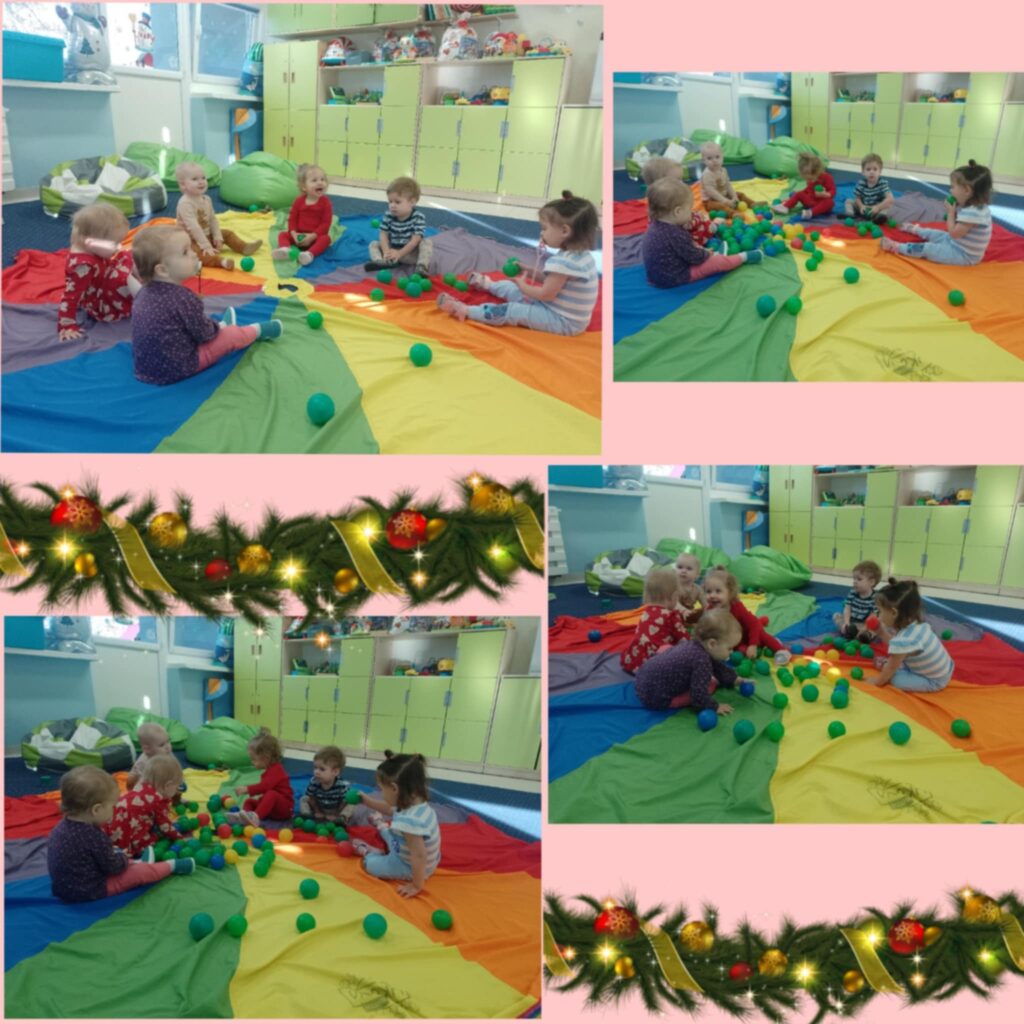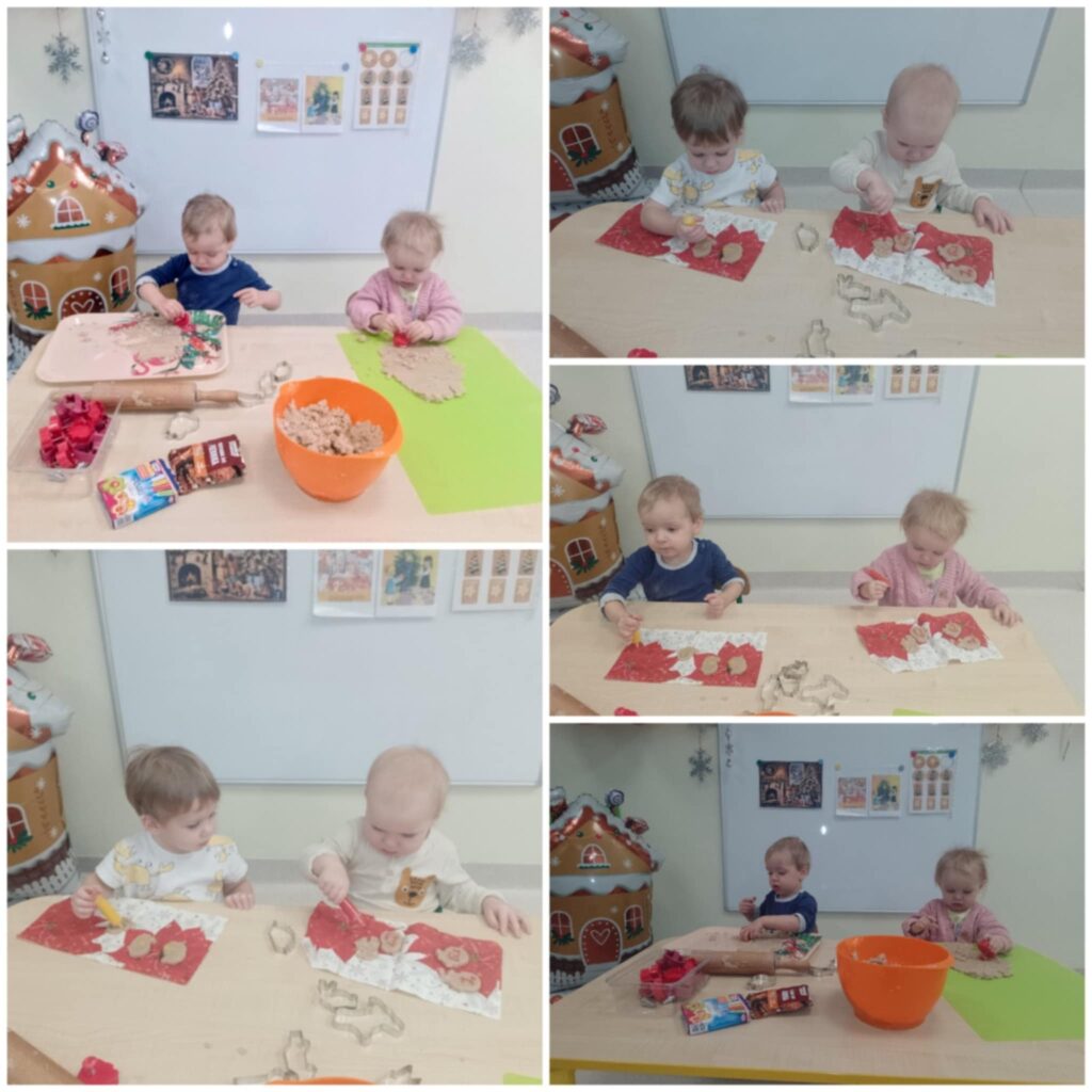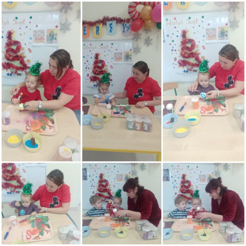 W tym tygodniu Smerfiki zapoznały się z tematyką świąteczną, symbolami oraz zwyczajami bożonarodzeniowymi. Utrwalaliśmy kolor zielony poprzez zabawę oraz rozwijaliśmy wyobraźnię przestrzenną układając klocki. Wspólnie ubieraliśmy choinkę poznając kolorowe ozdoby świąteczne. Dzieci wykonały pracę plastyczną „Kolorowe bombki” malując farbami i posypując brokatem styropianowe
