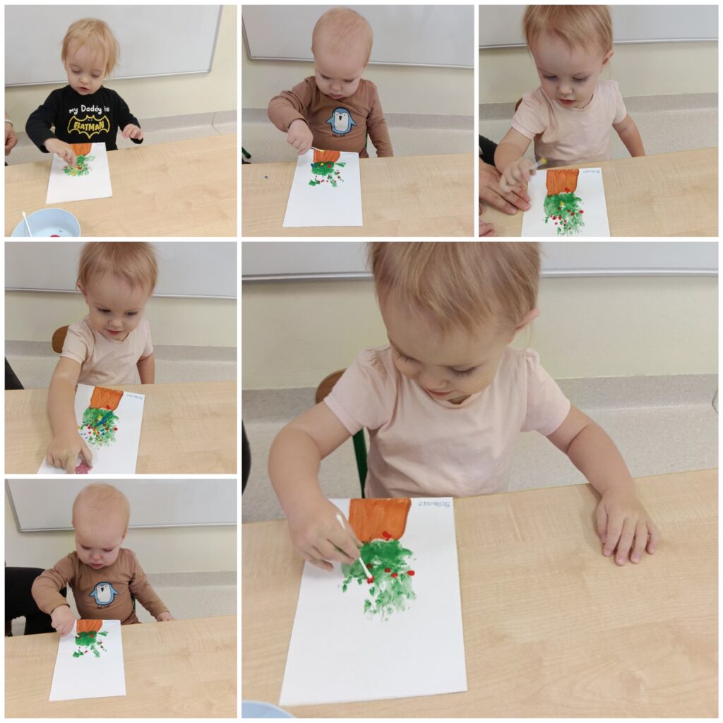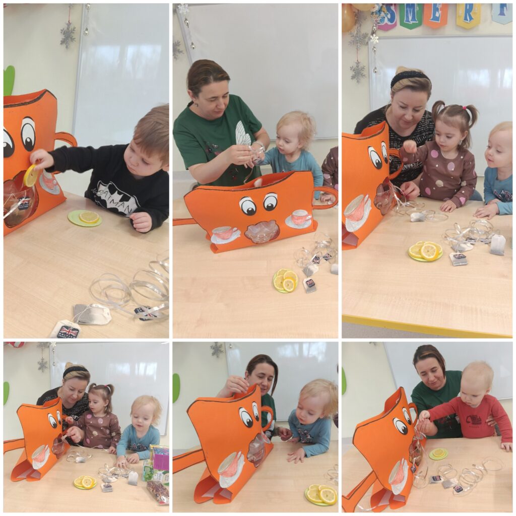 Maluszki przypominały sobie zimowe piosenki, czytaliśmy bajeczki o tematyce świątecznej i słuchaliśmy kolęd. Smerfiki wykonały dwie prace plastyczne: choinkę oraz piękne kartki świąteczne dla rodziców. W poniedziałek obchodziliśmy Dzień herbaty. Dzieci zapoznały się z różnymi rodzajami herbaty oraz parzyły ja w specjalnie przygotowanym imbryczku. Natomiast w piątek obchodziliśmy Pierwszy Dzień Zimy i z tej okazji wykonaliśmy piękne bałwanki. Tydzień upłynął w świątecznej atmosferze.