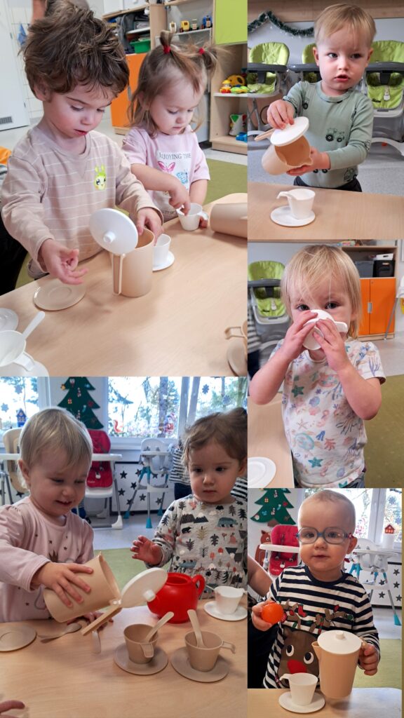 W poniedziałek obchodziliśmy DZIEŃ HERBATY. W kąciku kuchennym bawiliśmy się akcesoriami potrzebnymi do przygotowania tego pysznego napoju. Oglądaliśmy również ilustrację przedstawiającej proces powstania herbaty.