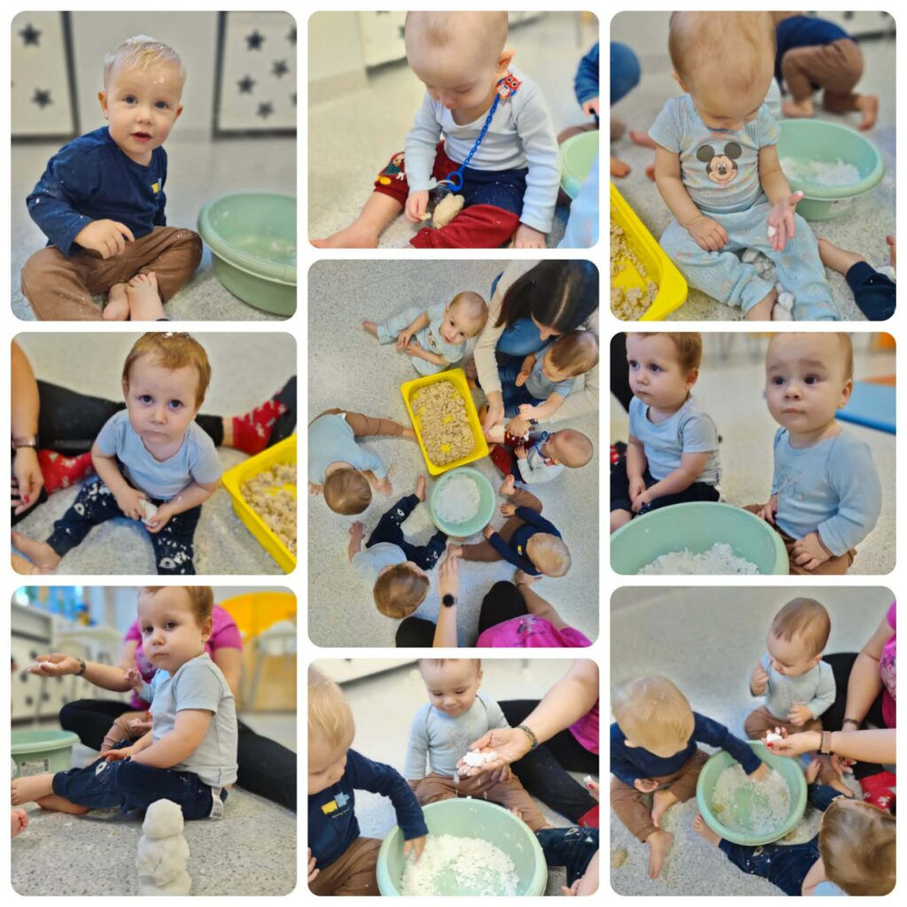 W tym tygodniu Niedźwiadki radośnie przygotowywały się do Świąt Bożego Narodzenia. Poznaliśmy zwyczaje bożonarodzeniowe oraz przygotowywaliśmy prezenty dla rodziców. Na zajęciach plastycznych ubieraliśmy choinkę przyklejając pompony. Czytaliśmy także książeczki o świętach i słuchaliśmy kolęd. W poniedziałek obchodziliśmy dzień herbaty. Ciocie przedstawiły krótką pogadankę jak powstaje herbata, a później dzieci w kąciku kuchennym przygotowały herbatę. Na zajęciach sensoplastycznych bawiliśmy się sztucznym śniegiem, rozwijając przy tym wyobraźnię oraz motorykę małą. W piątek obchodziliśmy pierwszy dzień zimy. Były zabawy zimowe z woreczkami, szarfami i piłkami.