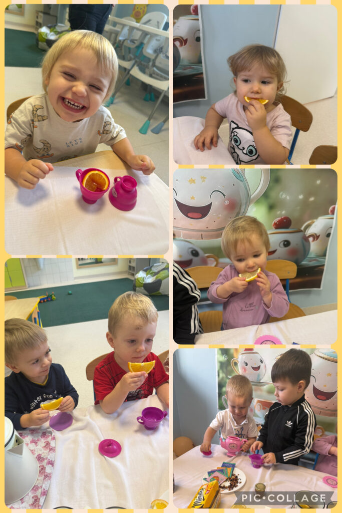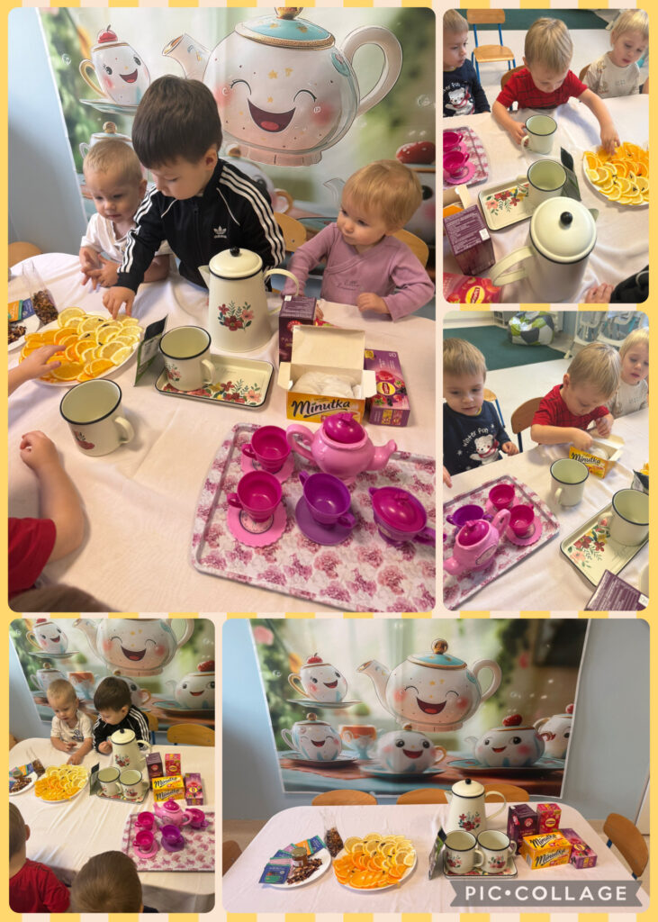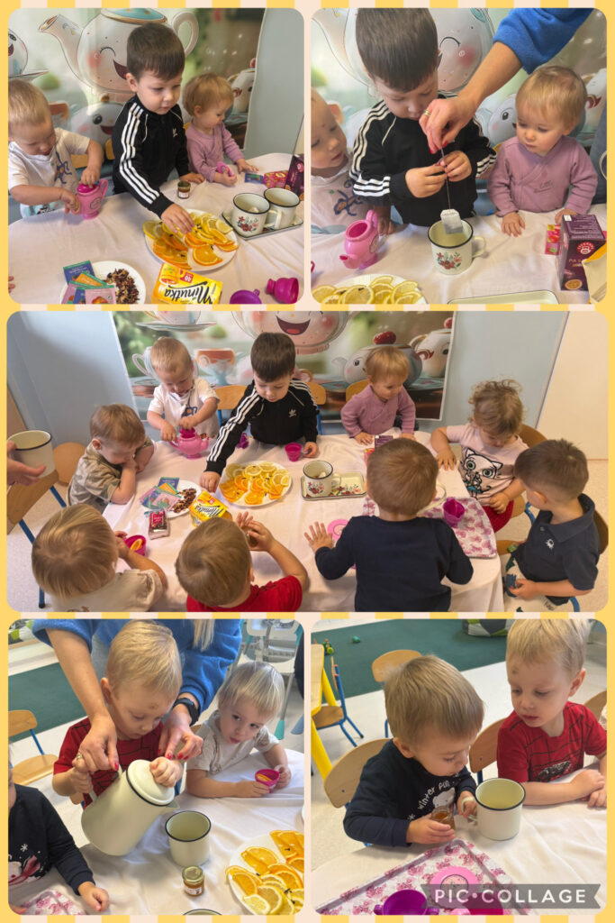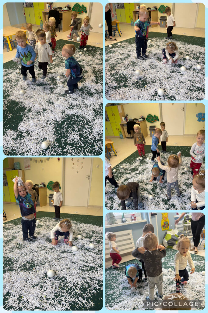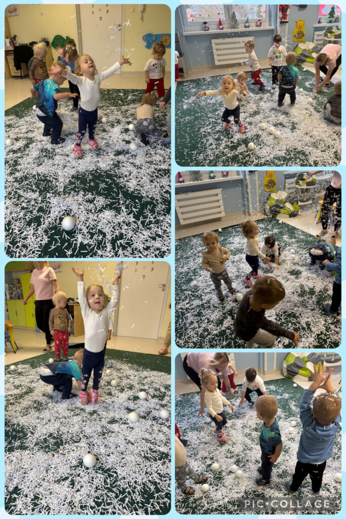 W minionym tygodniu dzieci uczestniczyły w zajęciach o tematyce zimowej i świątecznej. Z okazji Dnia Herbaty dzieci z zaciekawieniem słuchały jak powstaje herbata, oraz brały udział w zabawach tematycznych i ruchowych. Podczas zajęć muzyczno – rytmicznych tańczyliśmy do piosenek „Buch w śnieżny puch” oraz „Tupu tup po śniegu”. Dzieci słuchały zimowych piosenek i kolęd, wykonywały prace plastyczne oraz przygotowywały własnoręczne prezenty dla rodziców. Tydzień zakończyliśmy wspólnym świętowaniem Pierwszego Dnia Zimy podczas zimowych zabaw ruchowych i aktywności z chustą animacyjną.