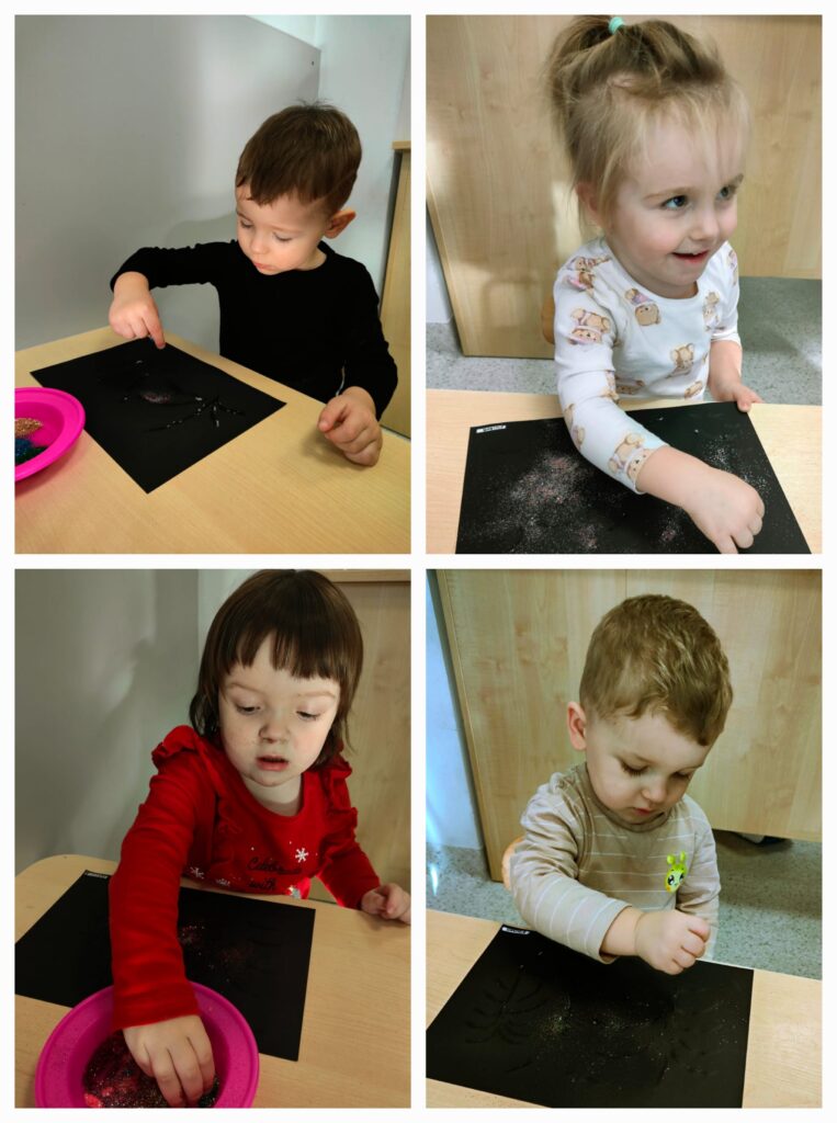 W tym tygodniu zapoznaliśmy się z tradycją witania Nowego Roku. Przypomnieliśmy sobie poznane zimowe piosenki oraz utrwalaliśmy naukę ustawiania się w kole i pociągu. Doskonaliliśmy poczucie rytmu w czasie grania na instrumentach. Wykonaliśmy pracę plastyczną: Fajerwerki. Poznaliśmy atrybuty zabawy noworocznej: balony, confetti. W piątek wysłuchaliśmy wiersza „Bracia Miesiące” E.H. Krystek.