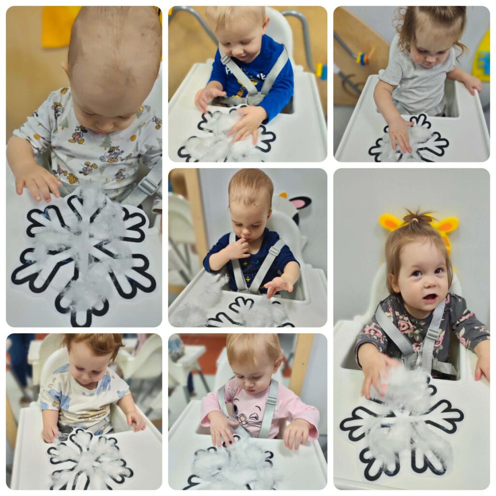 W minionym tygodniu Niedźwiadki poznały nowe piosenki oraz opowiadania zimowe. Zapoznały się również z postacią Pani Zimy a także z ubiorem i zabawami zimowymi oglądając książeczki tematyczne. Uczyliśmy się rzucać do celu kulkami, które wcześniej tworzyliśmy z papieru i ćwiczyliśmy oddech dmuchając w płatki śniegu. Na zajęciach plastycznych Niedźwiadki, przy użyciu waty, wyklejały swoje śnieżynki. W czwartek w trakcie zajęć muzyczno – rytmicznych dzieci uczyły się bawić w kole z użyciem instrumentów muzycznych.