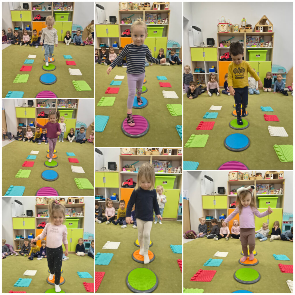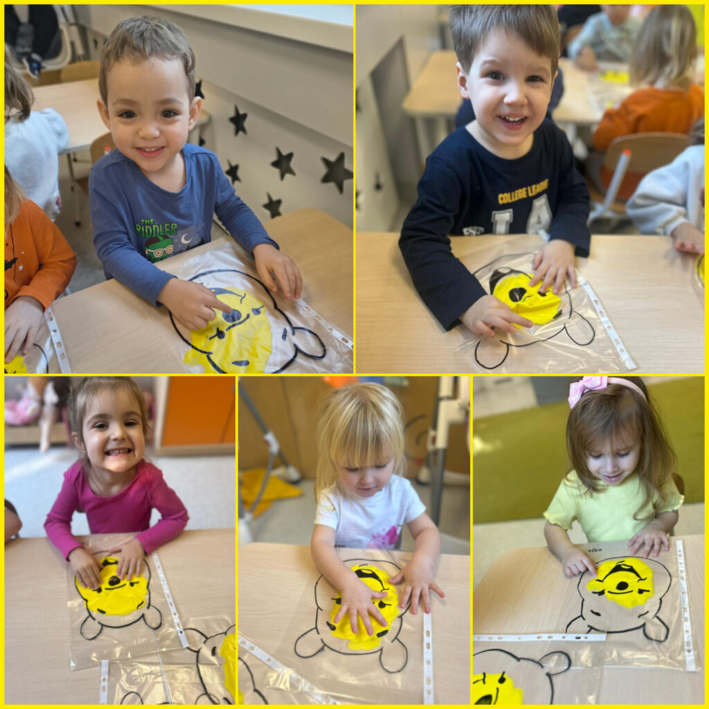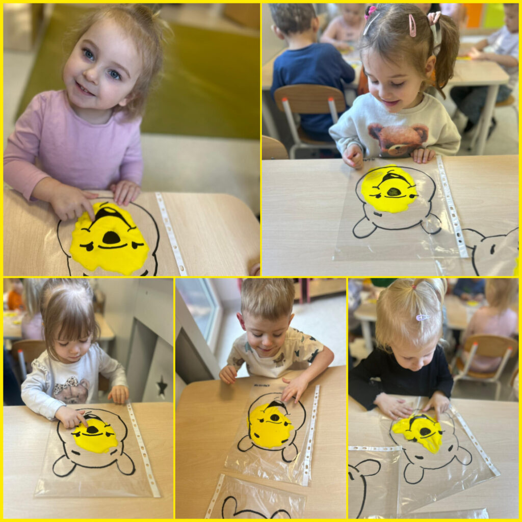Kolejny tydzień stycznia dla Zajączków był okazją do rozwijania wyobraźni i integrowania się z grupą w czasie swobodnych zabaw. Zabawą polegającą na rzucaniu piłki do dzieci ciocie ćwiczyły z Zajączkami pamięć i refleks. Odbyły się zajęcia muzyczno – rytmiczne dotyczące zabaw zimowych. Dzieci i ciocie ilustrowały ruchem tekst grupowej zabawy o bałwanku oraz udały się na jazdę w kuligu na sankach z odgłosami wydawanymi przez dzwoneczki u uzdy koników. Chodziliśmy po śladach starając się utrzymać równowagę. Masowaliśmy także rączki piłeczkami z wypustkami. Swoje trzecie urodzinki świętował z Zajączkami Ludwik, któremu ciocie życzą dużo zdrówka, uśmiechu na buzi i słoneczka na co dzień. W DNIU KUBUSIA PUCHATKA dzieci wykonały pracę plastyczną – Kubusia Puchatka i postarały się swoim ubiorem zaakcentować jego święto. Przez cały czas budowaliśmy radosny nastrój zaufania, szacunku i akceptacji.