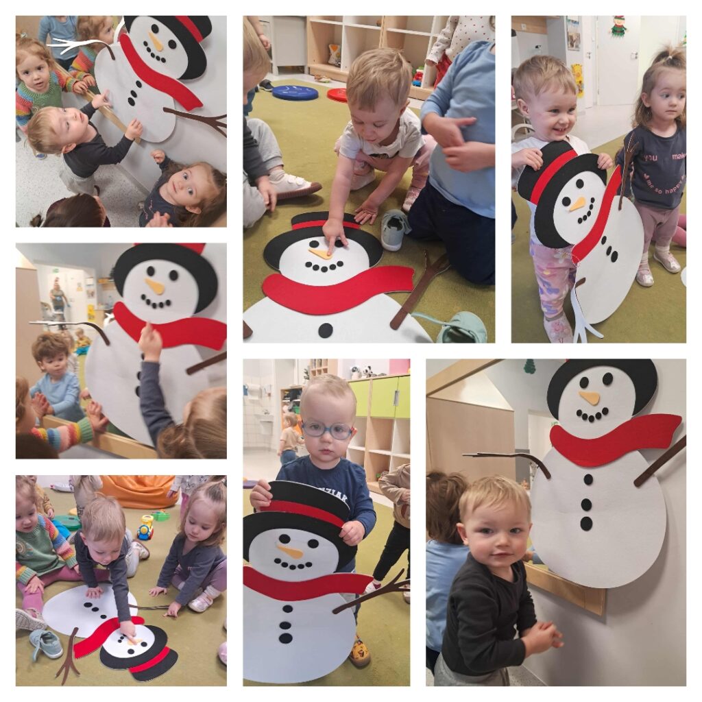 Poprzez pokazywanie historyjki obrazkowej dzieci dowiedziały się jak ulepić bałwanka. Poznały jego charakterystyczne cechy i wygląd.