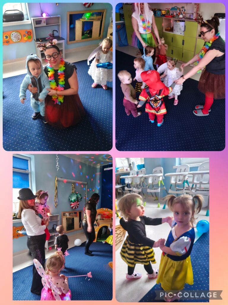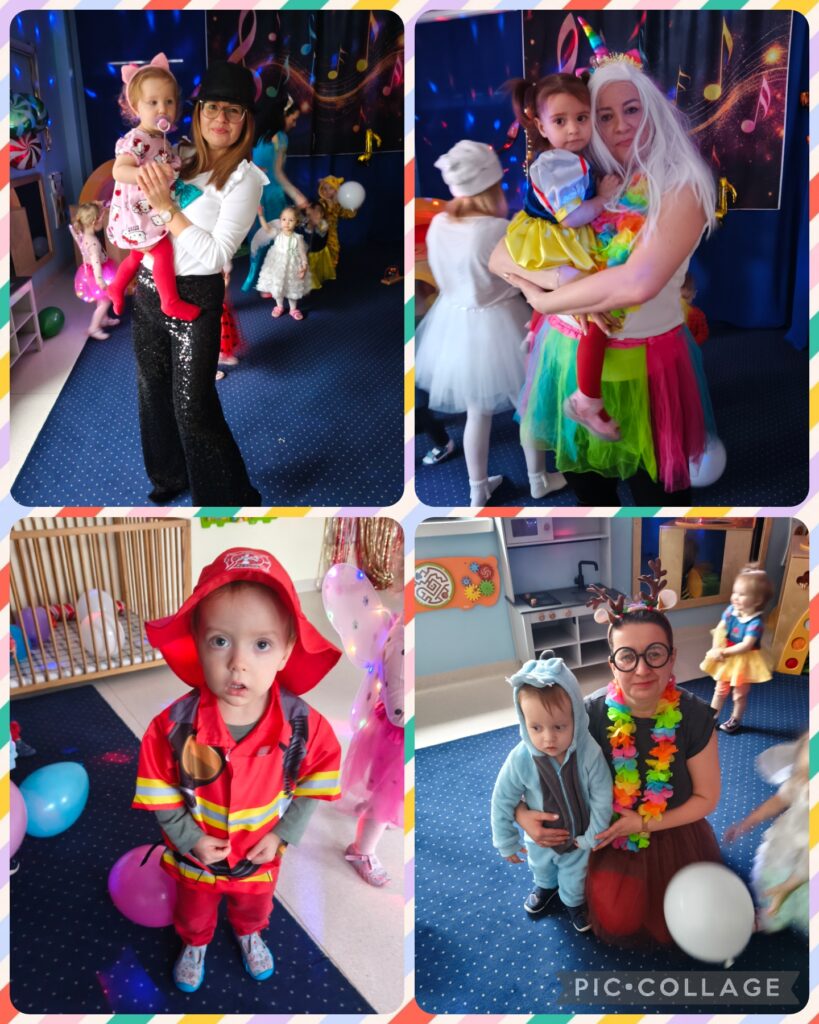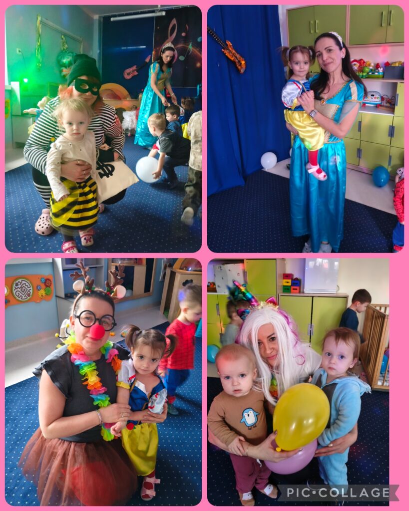 W środę w naszym żłobku odbył się bal karnawałowy. Cóż to był za bal! Było mnóstwo radości, tańca i śmiechu przy dźwiękach ulubionych piosenek. Kolorowe stroje i wspólna zabawa stworzyły wyjątkową, pełną wrażeń atmosferę.