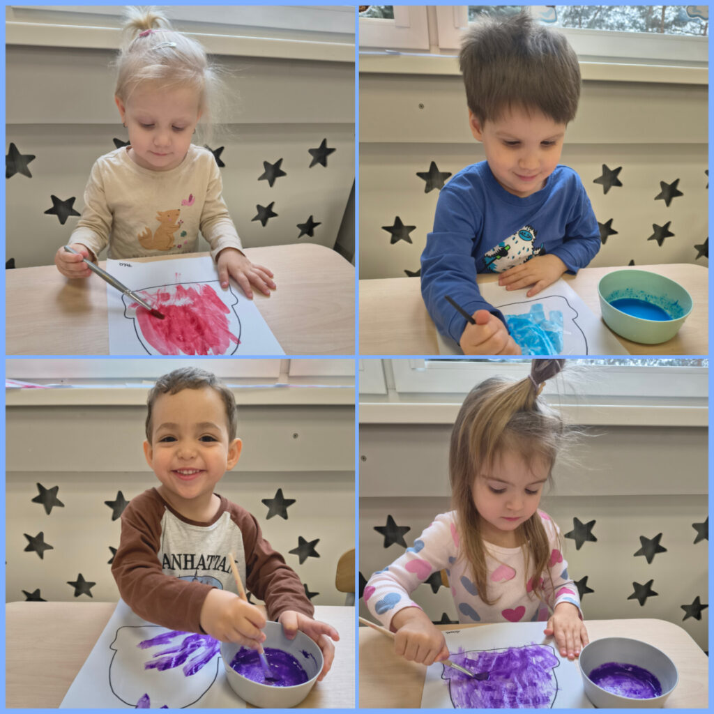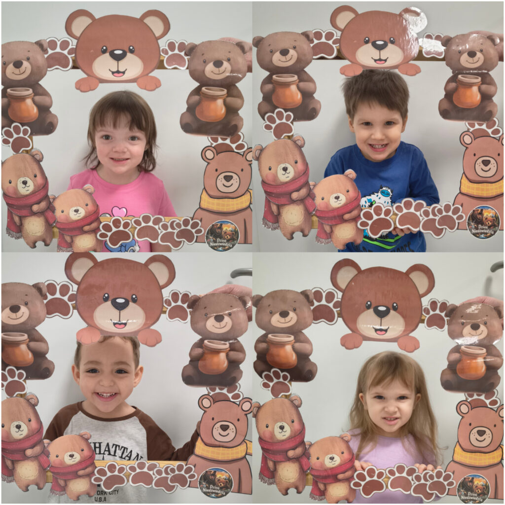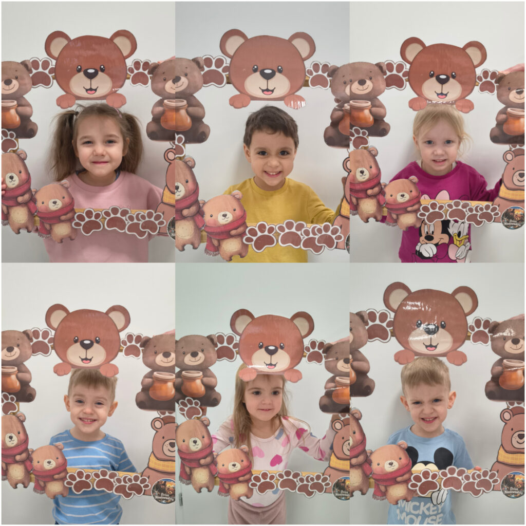 Pierwszy tydzień lutego grupa Zajączków rozpoczęła od utrwalania zjawisk atmosferycznych charakterystycznych dla zimy. W DNIU NIEDŹWIEDZIA bawiliśmy się do piosenki „Stary niedźwiedź mocno śpi” naśladując jego nawyki podczas snu. Ubieraliśmy niedźwiadka na zimowy spacerek w czapki, szaliki i rękawiczki. Wykonaliśmy pracę plastyczną – zimowa czapka – ćwicząc prawidłowe posługiwanie się przyborami plastycznymi. Bawiąc się kaszą jaglaną, uwalniając naturalną ekspresję Zajączki rozwijały radość i samodzielność. Dzieci przesypywały kaszę przez sito, przekładały do miseczek, szukały skarbów schowanych i zasypanych przez kaszę. Odbyły się również próby rysowania paluszkami indywidualnych grafik jaglanych. Swoje trzecie urodzinki obchodziła Maja, której ciocie i Zajączki życzą dużo zdrówka, uśmiechu i słoneczka w każdy dzień.