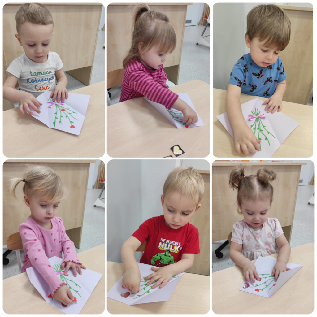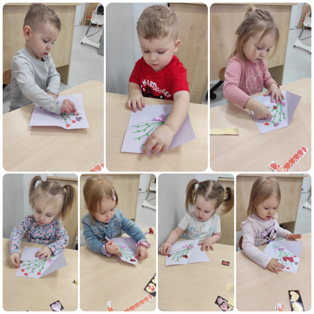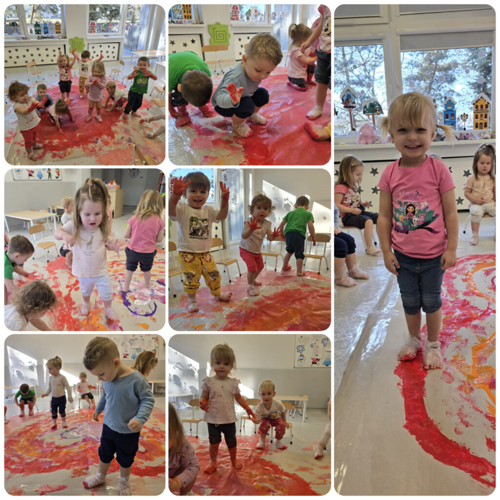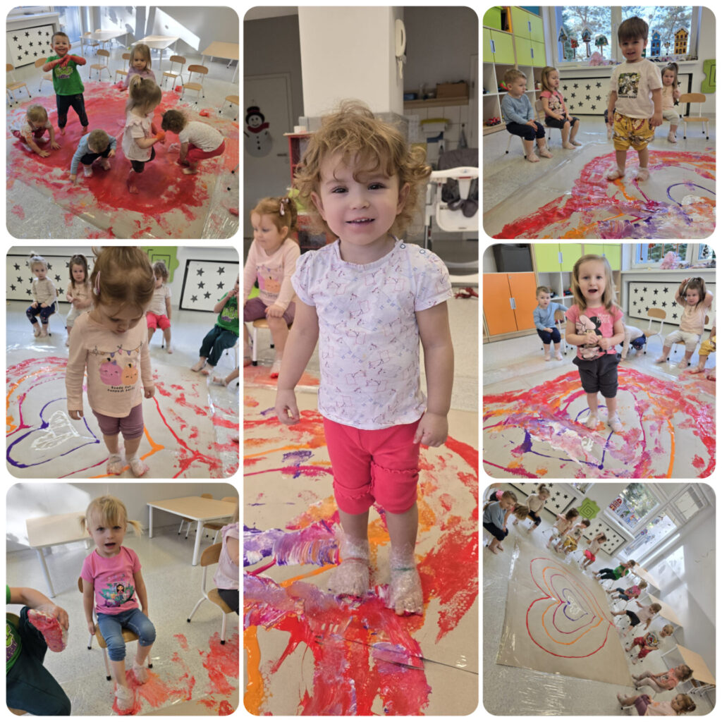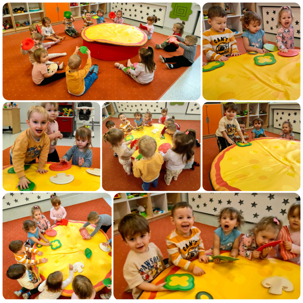 W tym tygodniu Sówki wzbudzały w sobie ekspresję ruchową i poczucie rytmu. W poniedziałek obchodziliśmy Międzynarodowy Dzień Pizzy, zapoznaliśmy się z piosenką „Pizza party” oraz tworzyliśmy swoje pizze przez dobór wyciętych elementów. Poznaliśmy instrumenty muzyczne, ich nazwy oraz wydawane dźwięki. Wykonaliśmy pracę plastyczną przedstawiającą instrumenty. W czwartek w ramach sensoplastyki odbyły się zajęcia: Malowanie stopami w skarpetkach z folii bąbelkowej. W piątek obchodziliśmy Walentynki. Wykonaliśmy kartkę okolicznościową oraz uczyliśmy się okazywać sobie sympatię i miłość. Przez cały tydzień towarzyszyły nam zabawy muzyczno – ruchowe oraz dowolne zabawy.