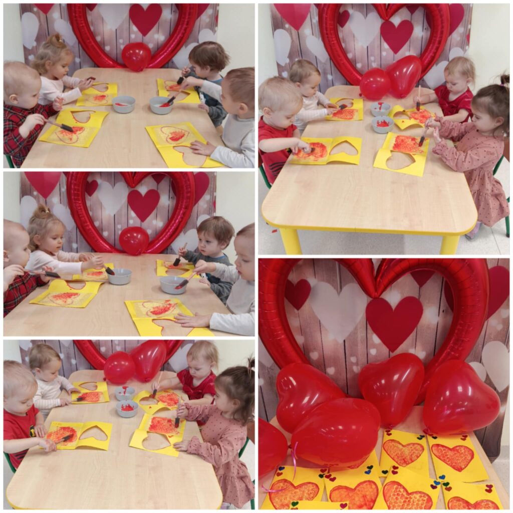 Na zakończenie tygodnia maluszki wykonały kartki okolicznościowe z okazji Walentynek. Została również zorganizowana dla naszych Smerfów walentynkowa sesja zdjęciowa.