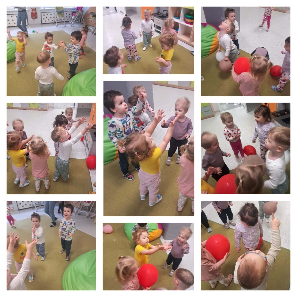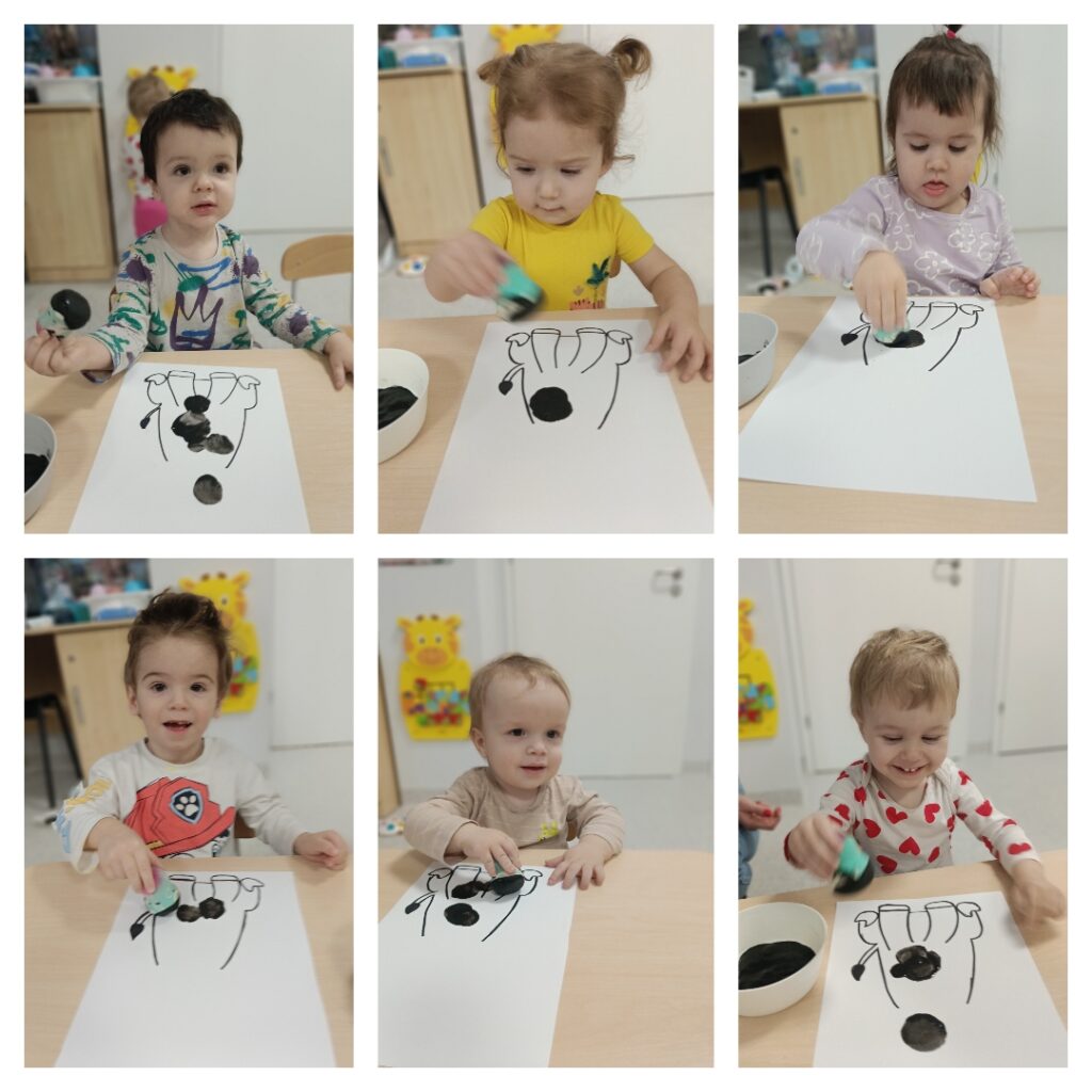 W środę słuchaliśmy piosenkę,, Bańkę łap”. Zwiększaliśmy zakres ruchów celowych rąk poprzez próbę łapania baniek. Podczas zabawy orientacyjno – porządkowej karmiliśmy kurki. Wykonaliśmy pracę plastyczną przedstawiającą krówkę.