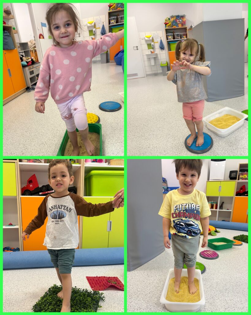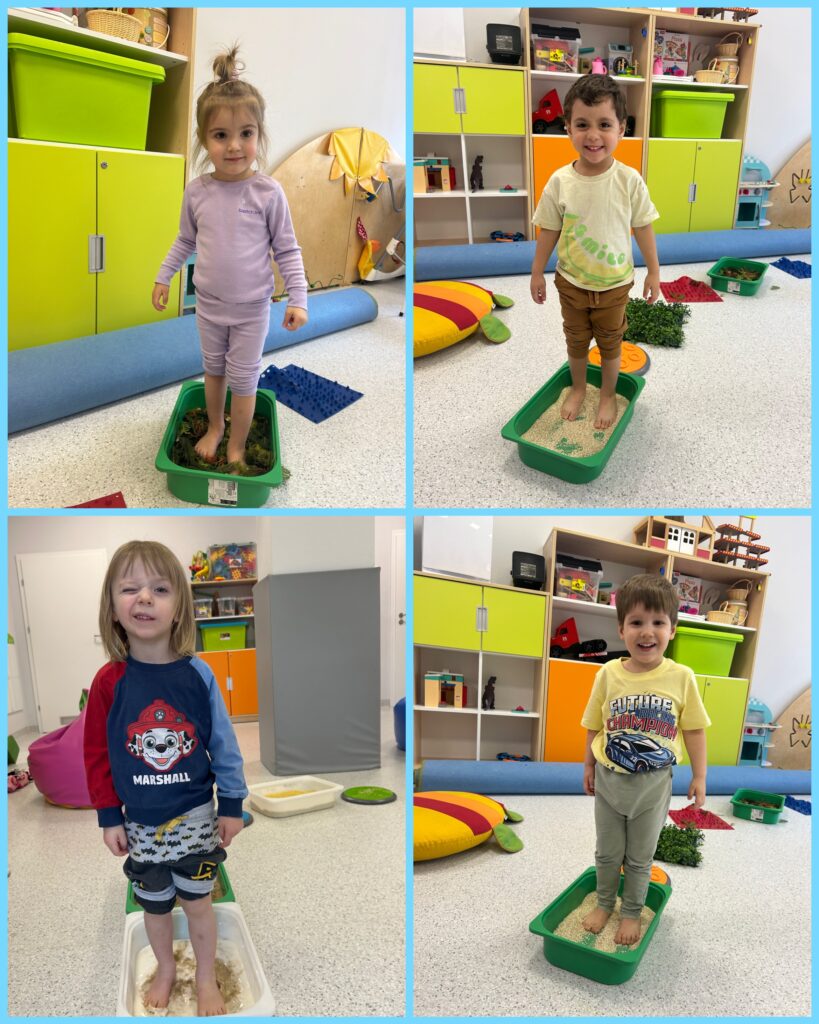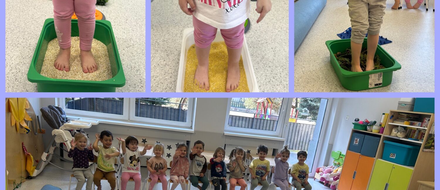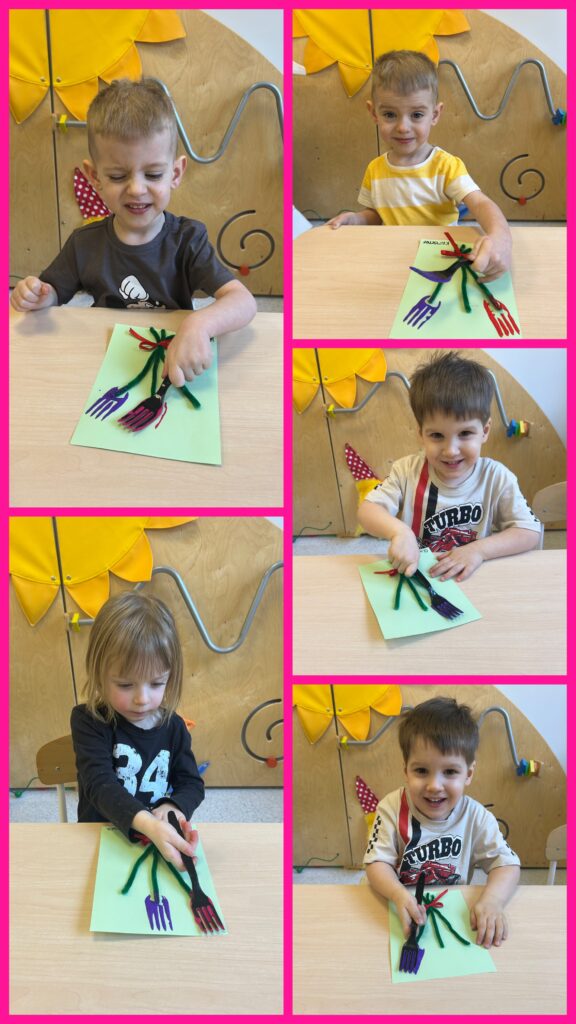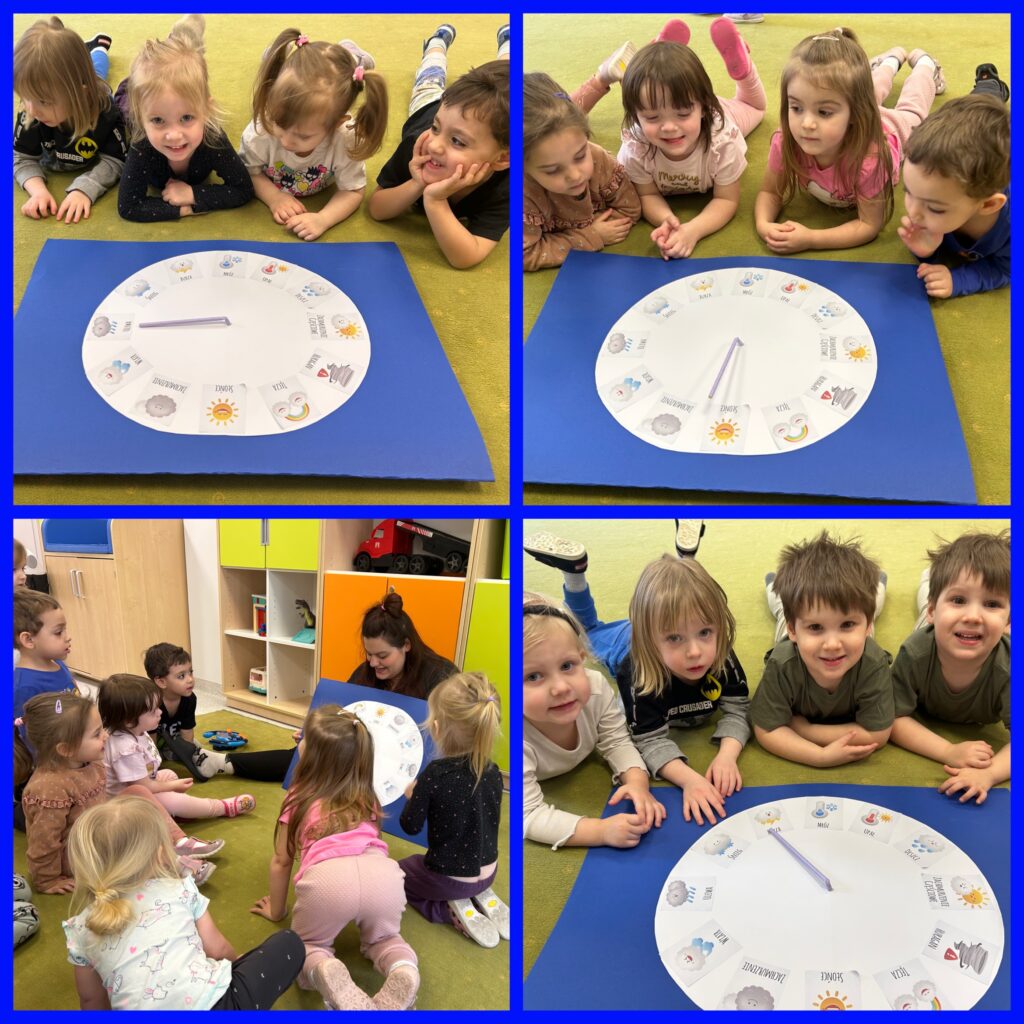 W DNIU LASU grupa Zajączków poznawała zwiastuny wiosny. Relaksując się na dywanie słuchaliśmy odgłosów lasu: szumu drzew, śpiewu ptaków i głosów leśnych zwierząt. Dzieci wykonując pracę plastyczną podjęły udaną próbę zamknięcia lasu w słoiku. Nastąpiło otwarcie wiosennego sezonu zabaw na tarasie. Zajączki mogły obserwować niebo i wypatrywać wiosennych ptasich zwiastunów nowej pory roku – bocianów. Dzieci z pomocą cioć kształtowały swoją wyobraźnię podczas zabaw z „zegarem pogody”. Spacerując po ścieżce sensorycznej dzieci rozwijały swoją równowagę i koordynację ruchową. Ciekawa trasa zachęcała do zabawy. Specjalny tor pobudzał receptory dotykowe znajdujące się na stopach. DZIEŃ KOBIET był okazją do wykonania przez dzieci kolejnej pracy plastycznej – wiosennych kwiatów oraz do zabaw muzyczno – ruchowych przy poznanych piosenkach.