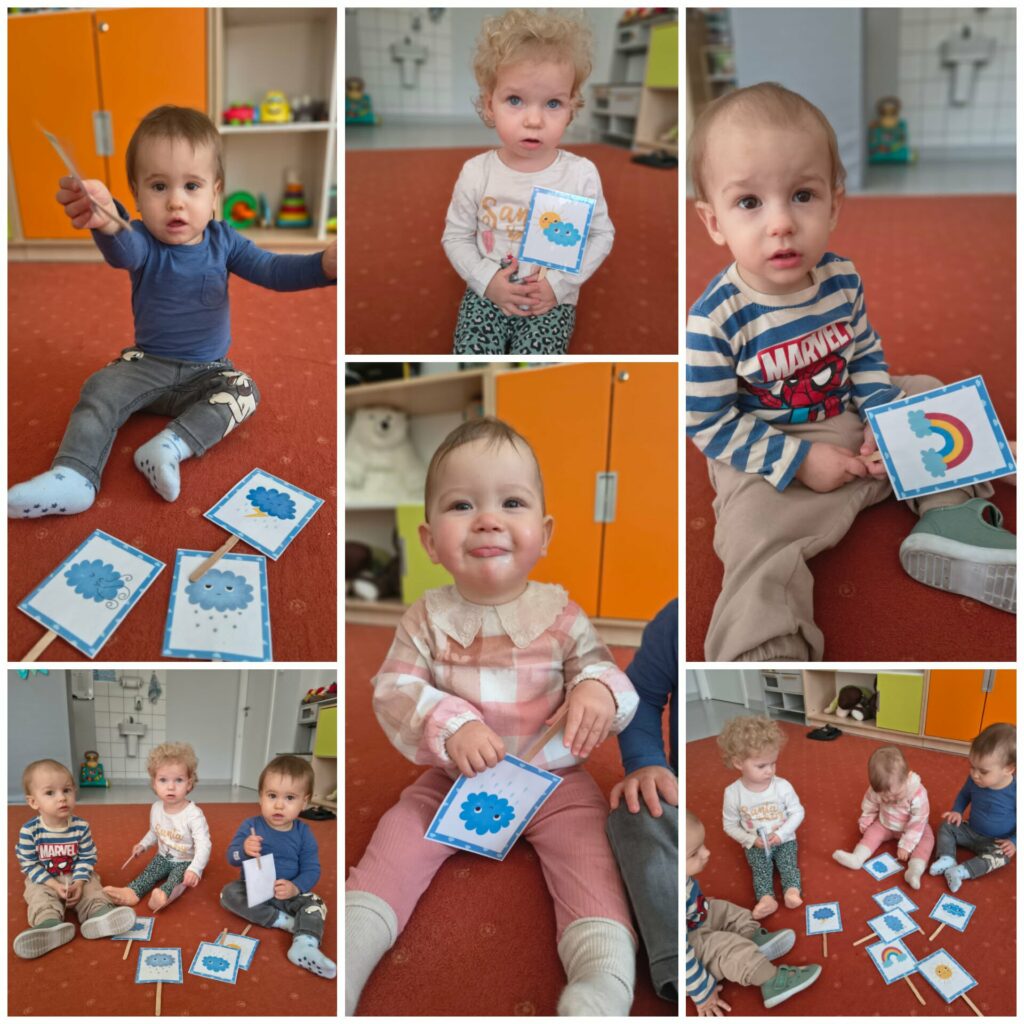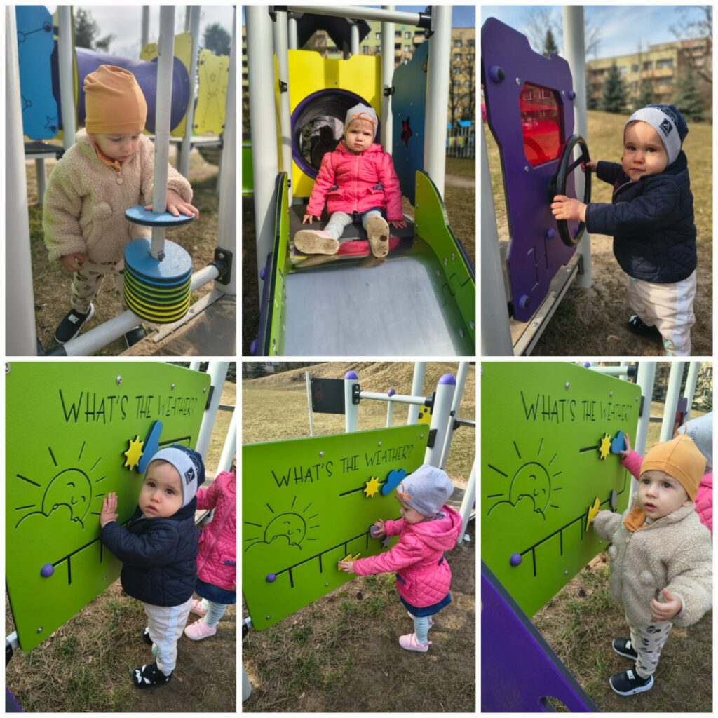 W drugim tygodniu marca Niedźwiadki korzystały z pięknej pogody zapowiadającej wiosnę. Chodziliśmy na spacery, na których obserwowaliśmy zmieniającą się pogodę. Dzieci poszukiwały słoneczka oraz chmurek. Ćwiczyliśmy koordynację ruchową na pobliskim placu zabaw. Poznaliśmy pogodowe piosenki i tworzyliśmy kalendarz pogodowy. Wykonaliśmy pracę plastyczną: garnek z pogodą. Dmuchaliśmy w piórka, skakaliśmy po kałużach a na zajęciach muzyczno – rytmicznych tańczyliśmy do piosenki „Marsz, marsz”.