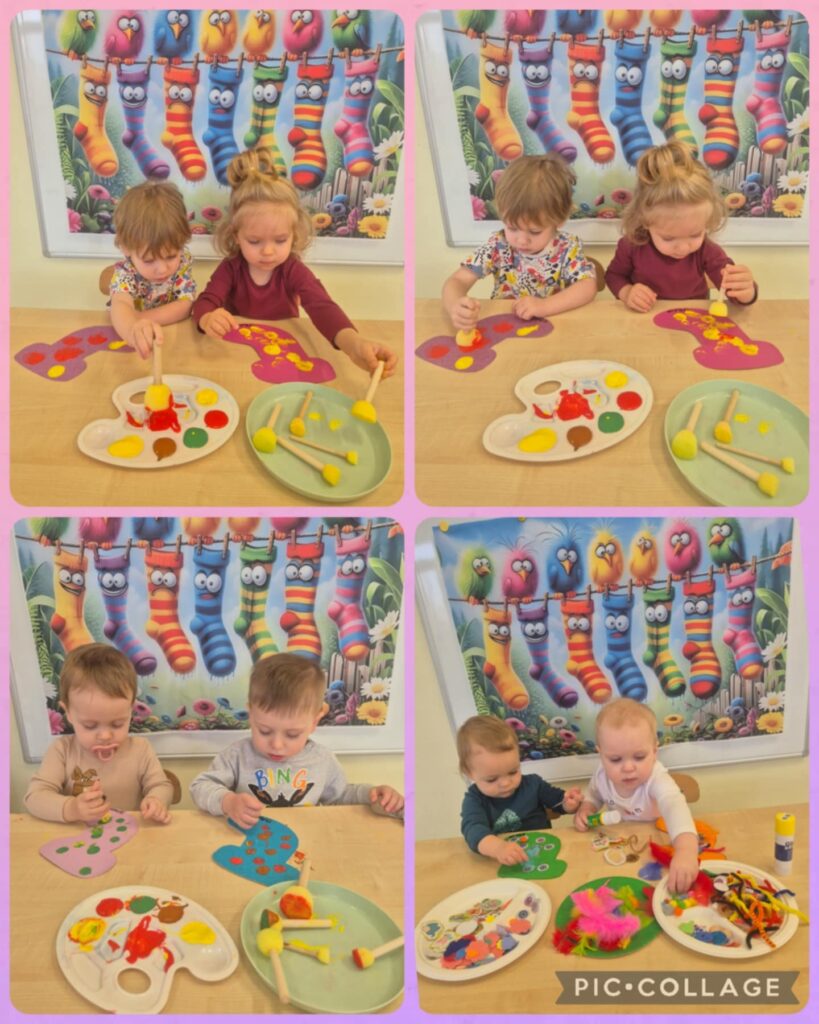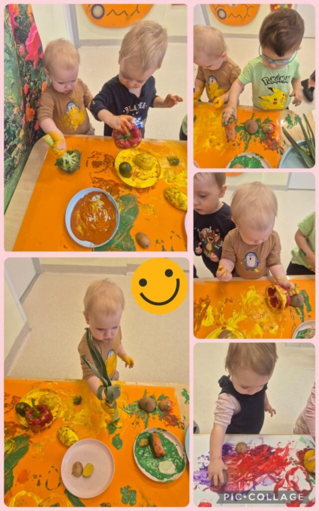 W tym tygodniu pożegnaliśmy zimę, śpiewając zimowe piosenki. Poznaliśmy pierwsze zwiastuny wiosny – bazie. Na zajęciach Smerfiki poznały wiosenne warzywa. Omawialiśmy ich kolor oraz twardość. W tym tygodniu wspólnie przywitaliśmy wiosnę i rozmawialiśmy o wiosennych kwiatach. Podczas zajęć dzieci wysłuchały wiersza pt.,,Wiosna” oraz poznały wiosenne zwierzątka: bociana i żabkę. Na zajęciach sensoplastycznych bawiliśmy się warzywnymi pieczątkami. Do zajęć wykorzystaliśmy pokrojone cząstki warzyw oraz kolorowe farby. Zabawa ta dostarczyła dzieciom wiele radości, a przy tym wspierała rozwój wyobraźni i poznawanie kolorów oraz kształtów. W piątek obchodziliśmy Dzień kolorowej skarpetki i z tej okazji wykonaliśmy pracę plastyczną-kolorowe skarpetki. W tym tygodniu swoje urodzinki obchodził Smerfiki Igor i Krystian. Solenizantom życzymy dużo uśmiechu i radości każdego dnia.