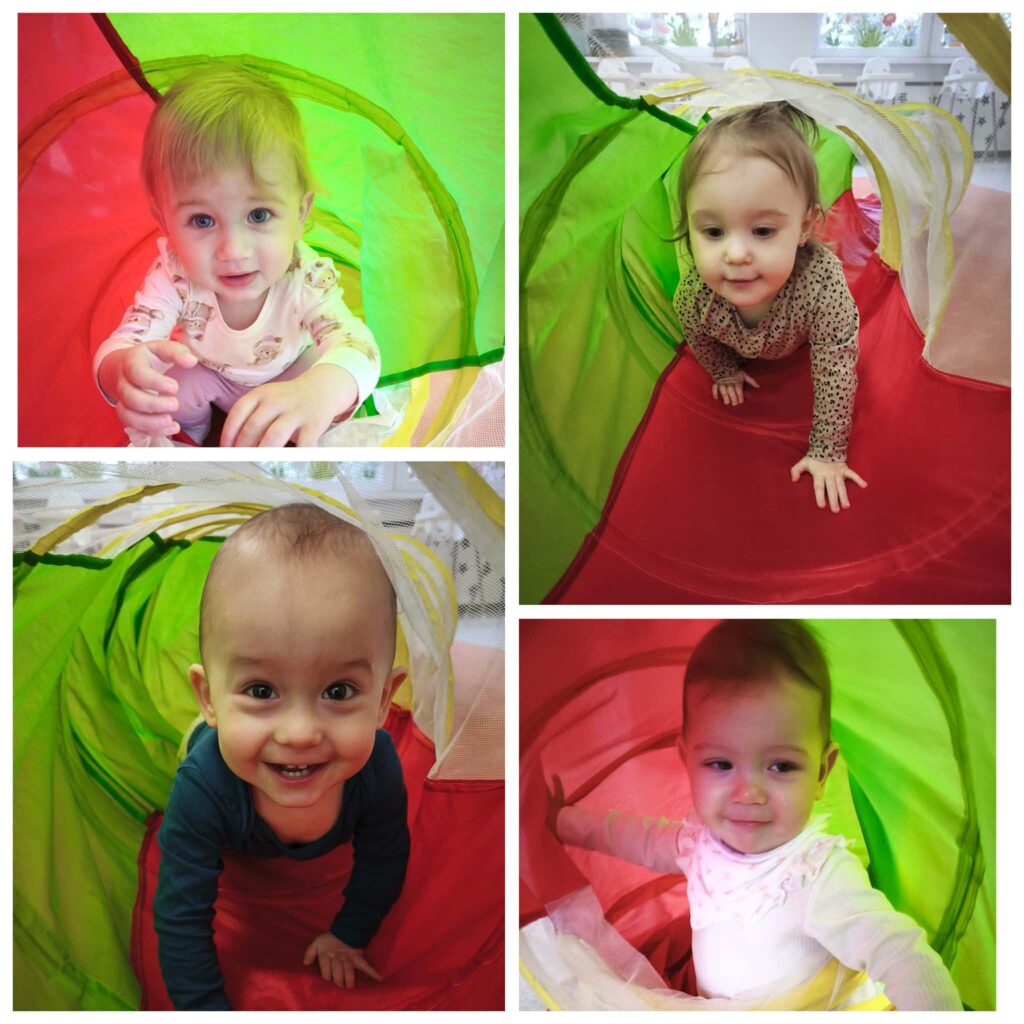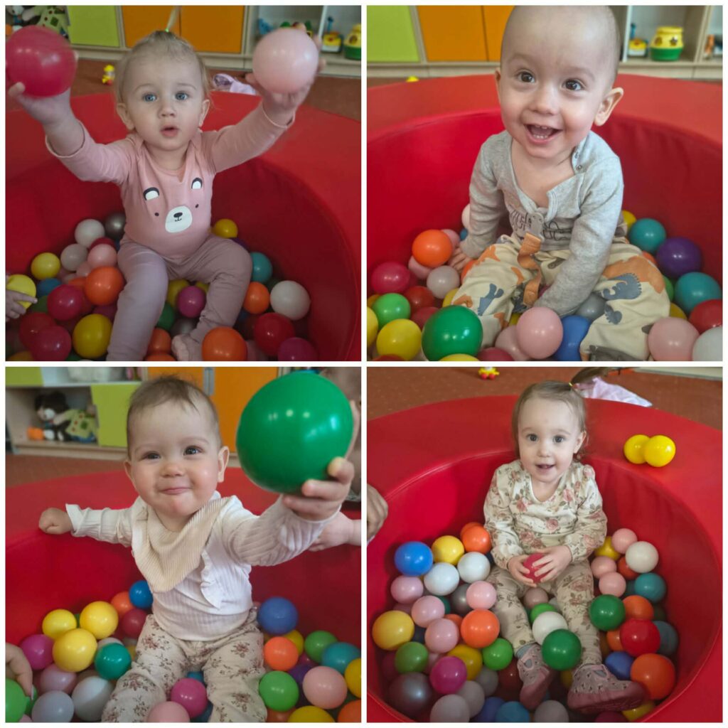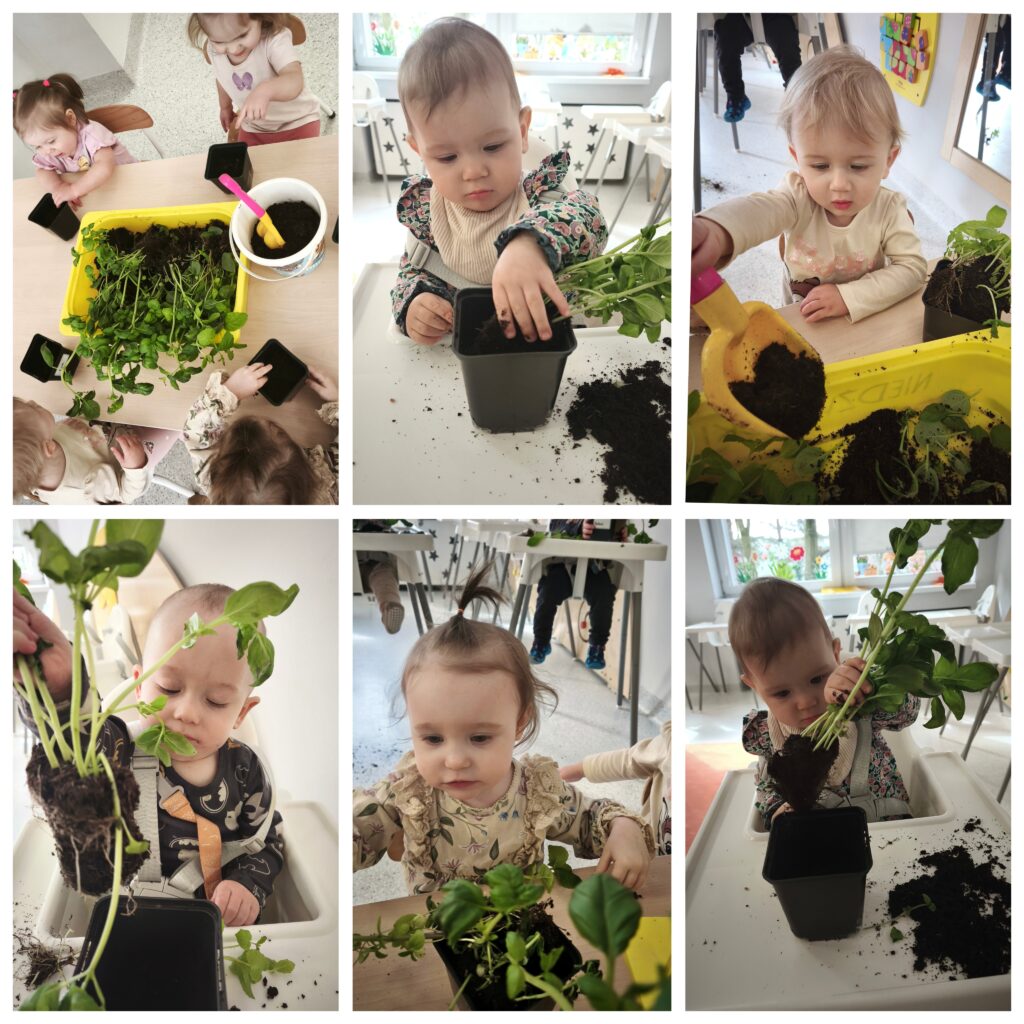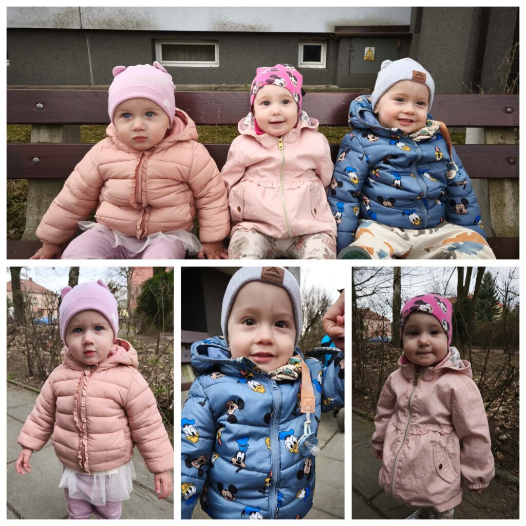 Ciocie przedstawiły wiersz „Idzie wiosna”. Podczas porannej gimnastyki dzieci ćwiczyły motorykę dużą. Udaliśmy się na spacer poszukując oznak wiosny. Bawiliśmy się w basenie z kulkami. Przy odgłosach pszczół próbowaliśmy naśladować odgłosy brzęczenia oraz żabki. Ćwiczyliśmy oddech wąchając kwiatki. Poznawaliśmy nowe piosenki „Była sobie żabka mała”, „Kle kle boćku”. Na zajęciach sensoplastycznych dzieci sadziły do doniczek zioła. W piątek obchodziliśmy pierwszy Dzień Wiosny oraz Dzień Kolorowej Skarpetki. Z tej okazji Ciocie wraz z dziećmi uczciły to święto zakładając dwie kolorowe skarpetki. Bawiliśmy się pacynką skarpetkową, która opowiadała nam o znikającej skarpetce. Wykonaliśmy pracę plastyczną: kolorowe skarpetki, wyklejając kolorową włóczką zarys skarpetki.