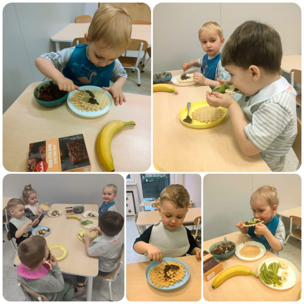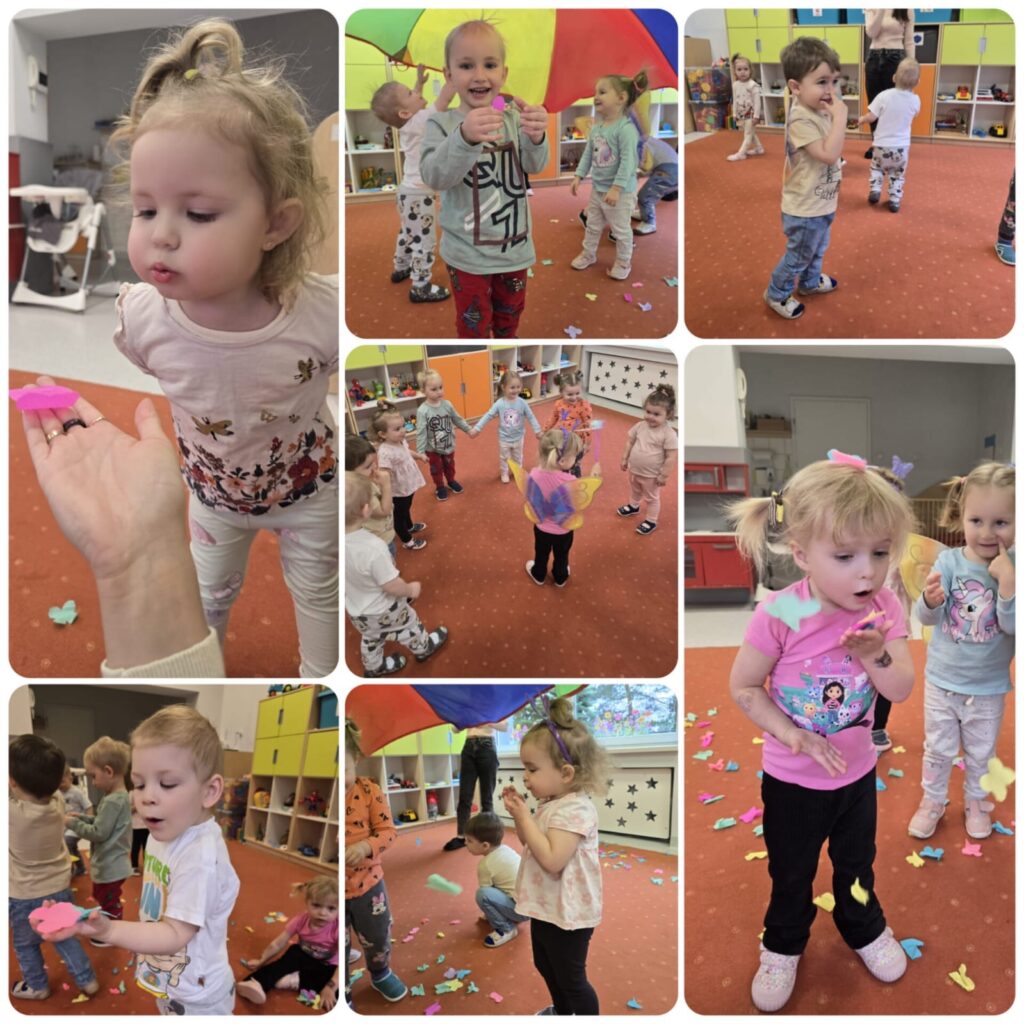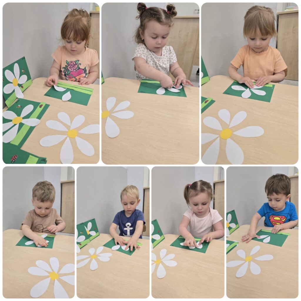 W tym tygodniu Sówki zapoznały się z wyglądem wiosennej łąki. Wykonaliśmy pracę plastyczną: Kolorowe kwiaty na łące. Odbyły się także ćwiczenia oddechowe oraz zabawa ruchowa: Gonimy motylki. W środę obchodziliśmy Międzynarodowy Dzień Gofra i z tej okazji wykonaliśmy pracę plastyczną: Pyszne gofry. W ramach rytmiki odbyły się zajęcia „Zabawy z motylkami”. Była zabawa z chustą animacyjną oraz „wiosenny relaks”, gdzie wsłuchiwaliśmy się w muzykę relaksacyjną przedstawiającą odgłosy przyrody.