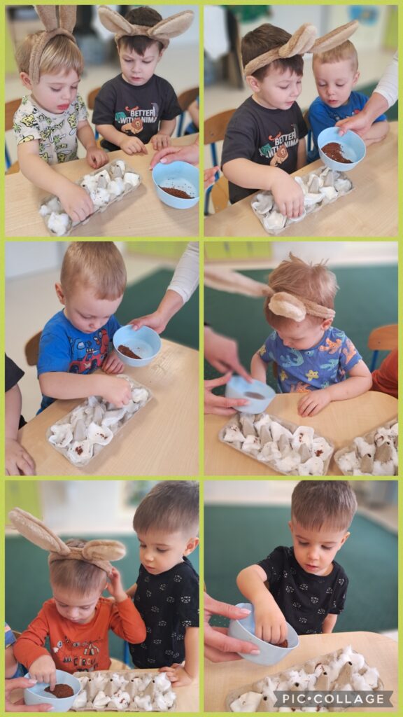 W tym tygodniu Skrzaciki przygotowywały się do nadchodzących Świąt Wielkanocnych. Rozpoczęliśmy tydzień od posiania rzeżuchy i podlewania jej, aby wyrosła na wielkanocny stół. Poznawaliśmy zwyczaje związane z Wielkanocą oraz wspólnie przygotowaliśmy koszyczek wielkanocny.