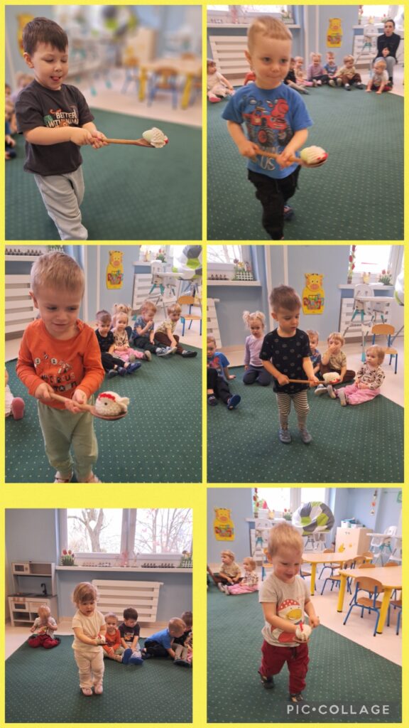 Na zajęciach muzyczno – rytmicznych pobudzaliśmy naszą wyobraźnię ćwicząc mięśnie i poczucie rytmu.
